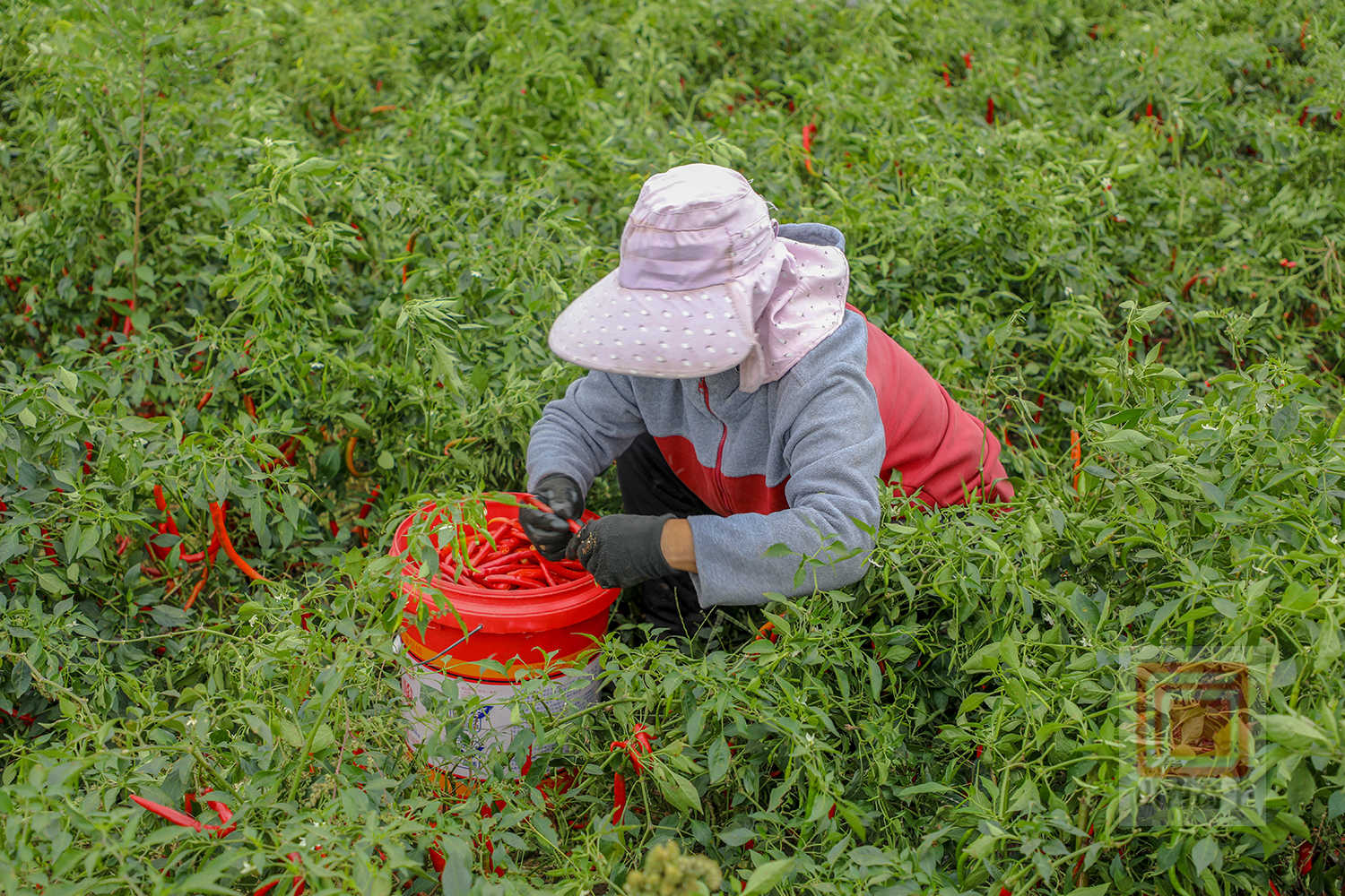 眼下,米山镇米东村种植的300亩辣椒进入采收期。面对持续阴雨天气给辣椒采收、储运带来的不利影响,米东村统筹调配人力物资,积极开展辣椒抢收作业。