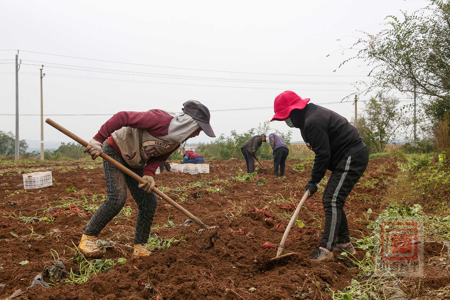眼下正值红薯收获的时节。连日来,在三甲镇南河村的200多亩红薯种植基地,村民们正抢抓晴好天气,加紧采收红薯,全力保丰收。