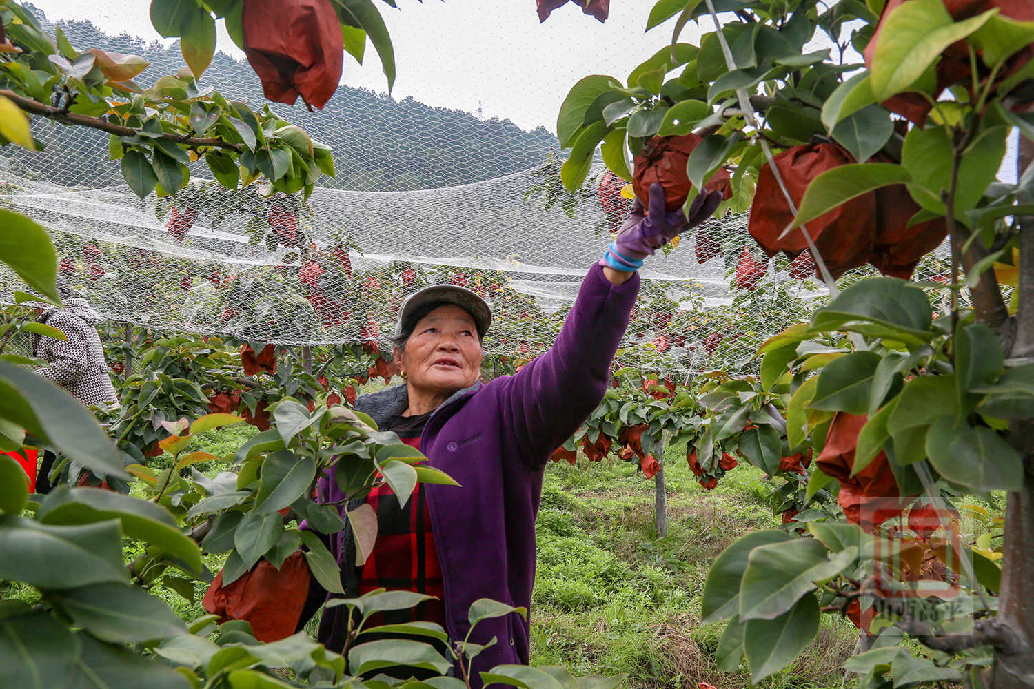 村民姬巧枝一边采摘,一边说道:“每年霜降过后,是晚秋黄梨成熟的季节。我们将采摘下来的黄梨,一一进行拆袋、分拣,及时销往市场,确保梨果的新鲜度。”