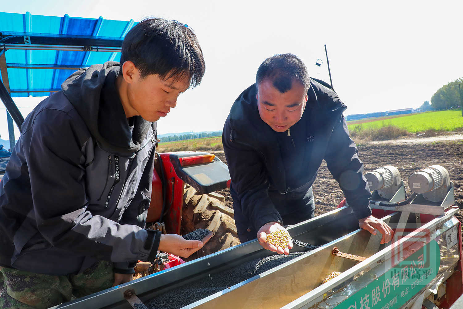 农机手冯海文说:“我们公司今年选用了6990和6878两种小麦种子混种,全部采用探墒沟播技术,一次性能完成灭茬、开沟、播种、施肥、覆土、镇压等多道工序,达到集中施肥、土实种匀、一播全苗、节本增效等效果。”