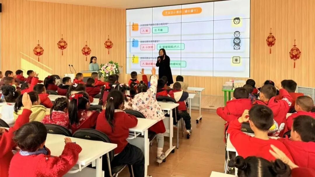 活动现场,来自高坪律师事务所的律师摒弃传统枯燥的法条讲解模式,结合幼儿认知特点创新设计“法治闯关大挑战”互动环节。“陌生人给的糖果能吃吗?”“身体的小秘密部位能让别人碰吗?”“遇到危险该找谁帮忙?”一系列贴近生活的安全问题让现场氛围瞬间热烈起来。孩子们纷纷高举小手踊跃抢答,在轻松愉悦的互动中逐步明晰危险边界,掌握“勇敢说不”“及时求助”等自我保护技巧。律师还通过情景模拟、动作示范等方式,将抽象的法律知识转化为幼儿易懂易记的实用技能,让法治意识在潜移默化中根植于心。