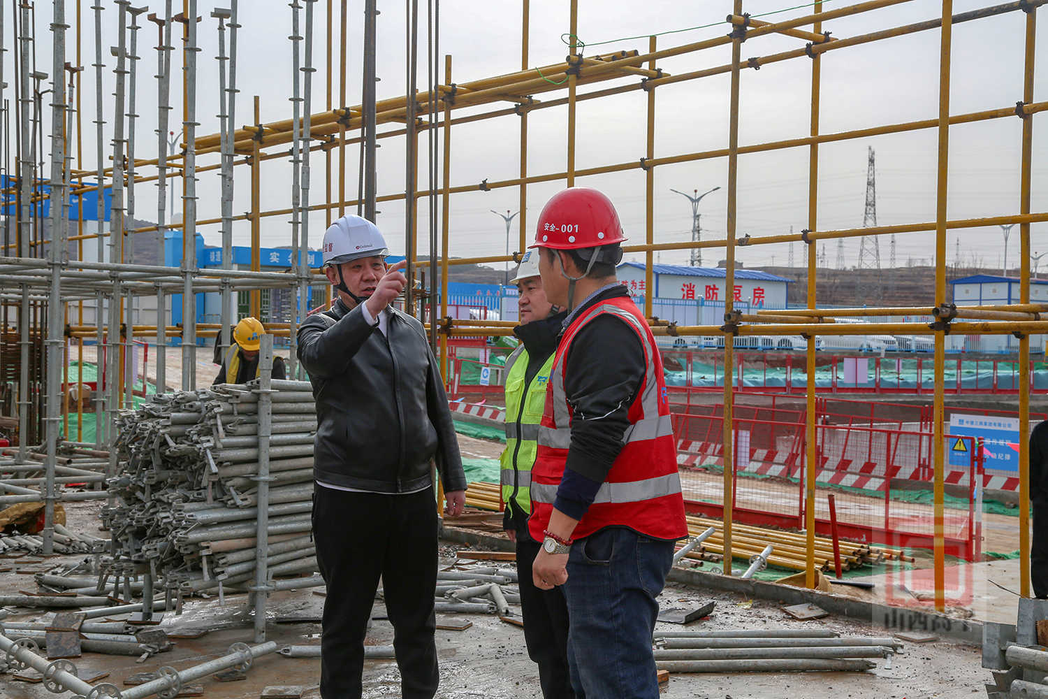 来到年产10万套铸件及柔性加工标准化厂房项目现场,检查组重点围绕深基坑、高支模、起重机械、脚手架搭设、临时用电等关键环节,进行全面细致排查,逐项“过筛”复核。