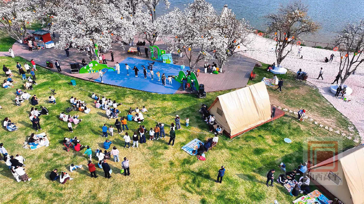 春和景明,一路花开,激活春日游“一池春水”。春日暖阳下,赏花游带来了露营热,也带动了乡村旅游。釜山康养片区以花为媒,不断完善基础设施,丰富旅游业态,不仅在泫水湖畔布设了太空舱、大型帐篷、露营小屋等多种风格的露营设备,供游客选择,还推出了赏花休闲游、美食集市、团建活动,以及泫水湖灯光秀、沉浸式实景演艺等形式多样的活动,带给广大游客多重体验,满足大家对美好生活的向往。