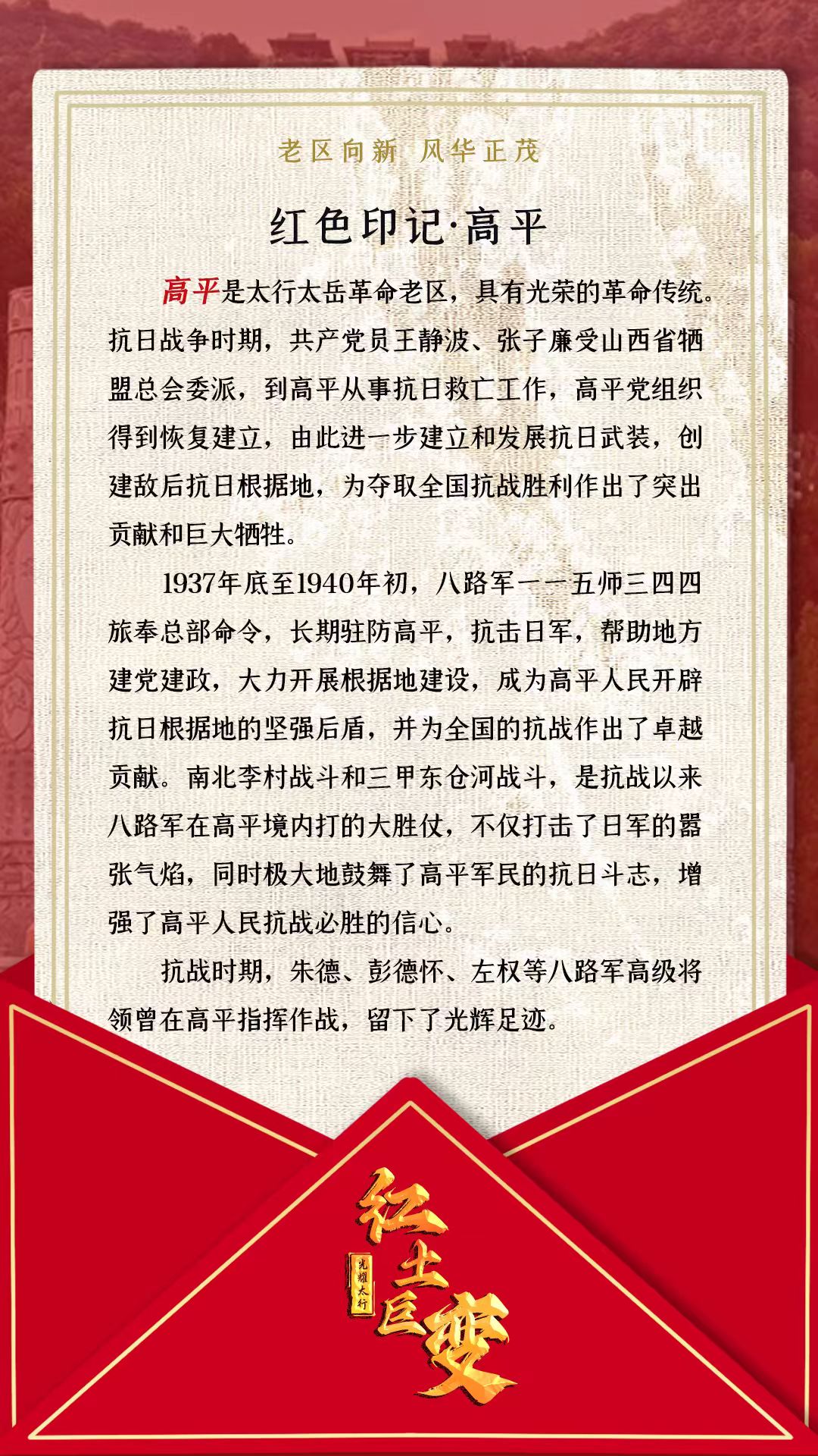 位于太行山脉南麓的高平,是一块被历史浸润的人文沃土。这里是中华民族人文始祖炎帝的故里;2000多年前,这片土地上爆发了我国古代规模最大、影响最深的一场大决战——长平之战;近代革命风云变幻,作为太行太岳革命老区,这里留下了大革命、抗日战争、解放战争等不同时期丰富的红色印记……