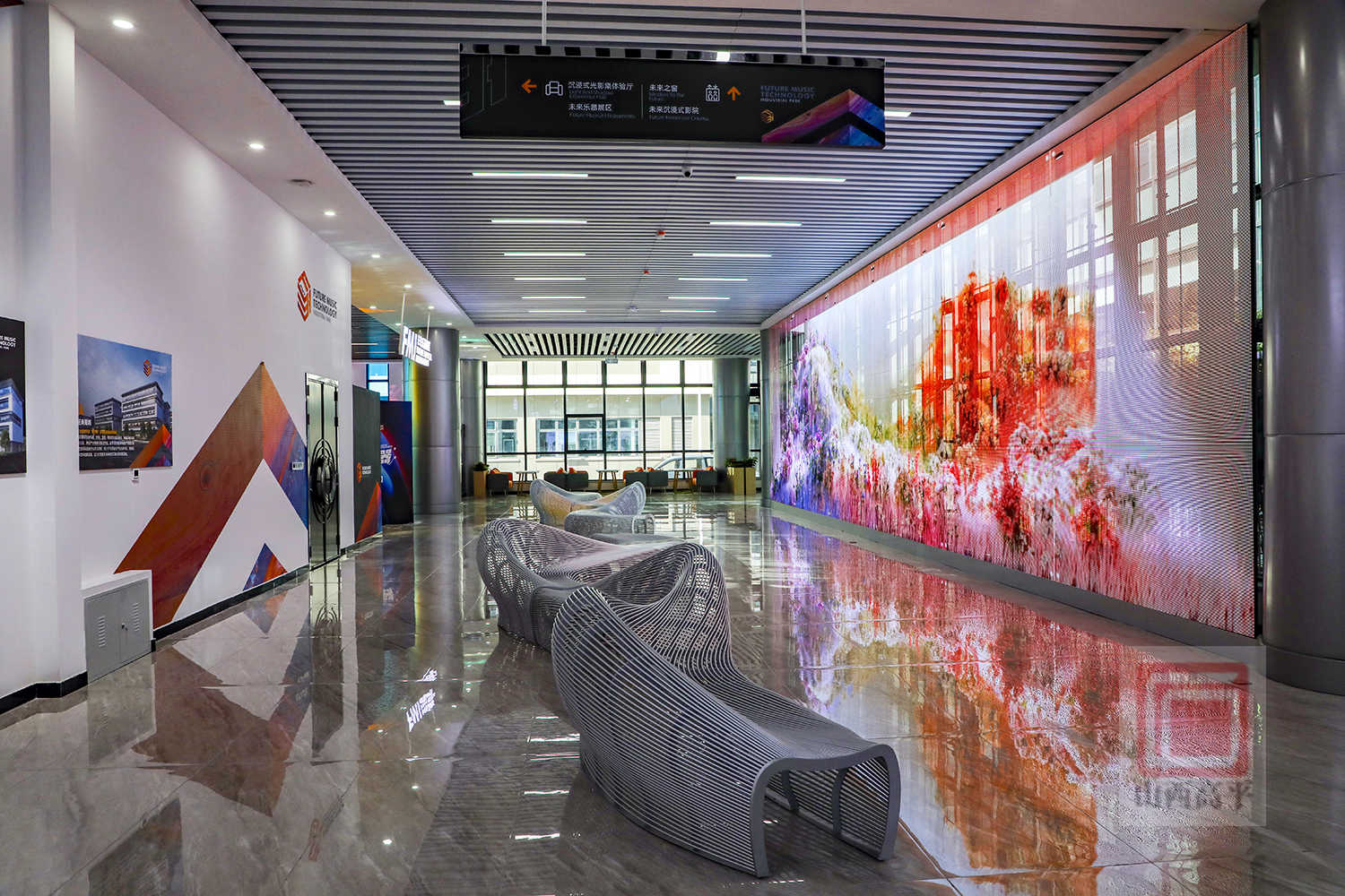 展示体验中心是未来音乐科技产业园的核心共享平台,集中展示园区企业的科研成果与创新产品,并提供全方位配套服务。走进展厅,音乐和科技元素完美融合,给人以科幻、动感、震撼的视觉冲击。未来沉浸影院“天马行空”、5D通感影院、音藥方舟、沉浸式光影樂体验厅、未来乐器展区等五个展区,借助VR、XR、3D光影控制、全景投影等前沿技术、前沿科研成果,打造了多感官维度的沉浸式音乐体验中心。