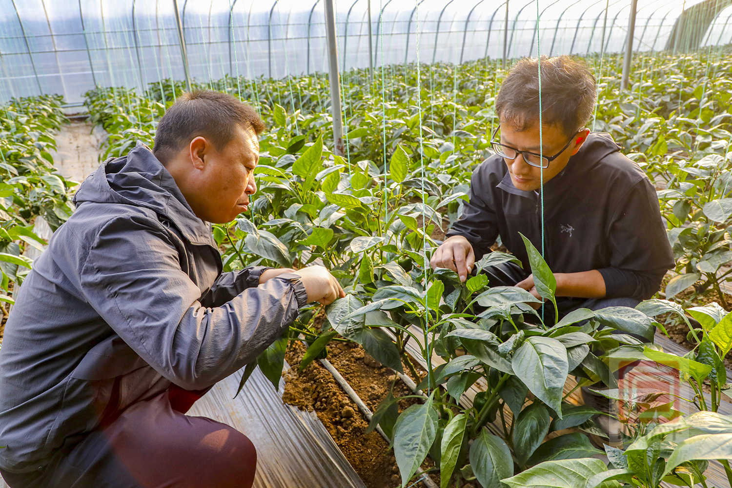 深秋时节,来到位于陈区镇浩庄村玺田农业园区的蔬菜大棚,连片的青椒郁郁葱葱、长势旺盛。村民们穿梭其中,娴熟地采摘着成熟的青椒。随后,由专人运往仓库,经过分拣、称重、装箱后,将送往一线城市。