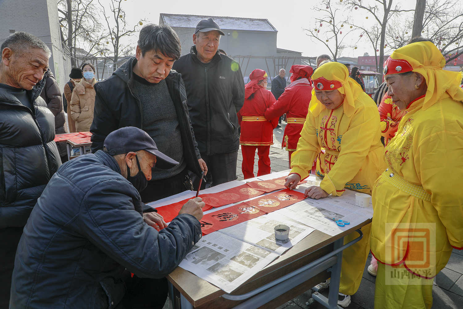 活动现场还同步开展了义写春联、发放腊八粥活动。书法家们挥毫泼墨,将新春祝福融入一副副春联中。工作人员将热气腾腾的腊八粥送到村民手中,暖胃更暖心。村民们领到手写的春联,喝着腊八粥,感受到了浓浓的年味。