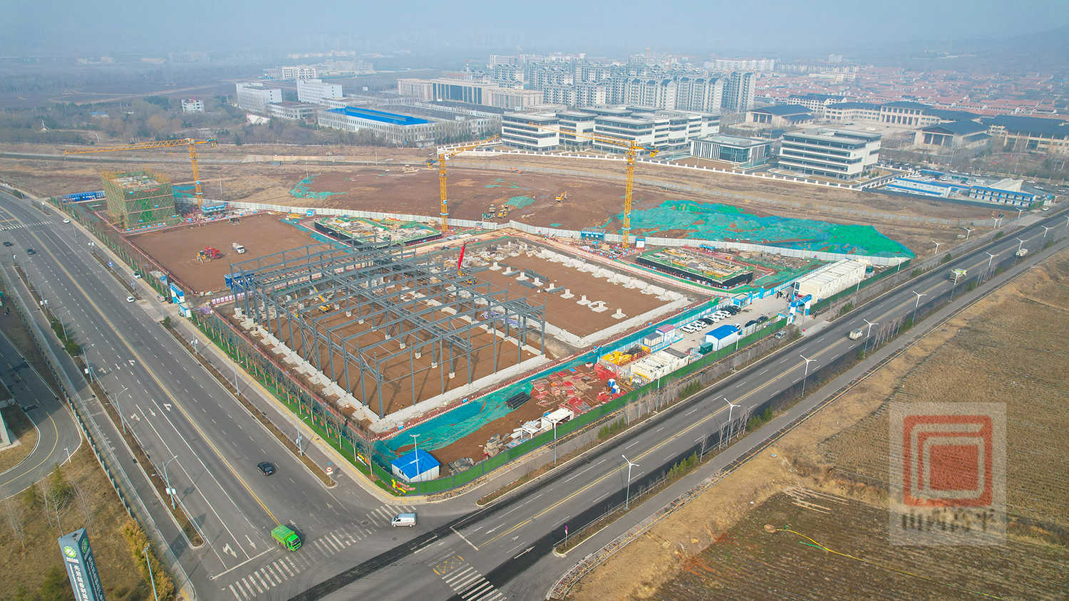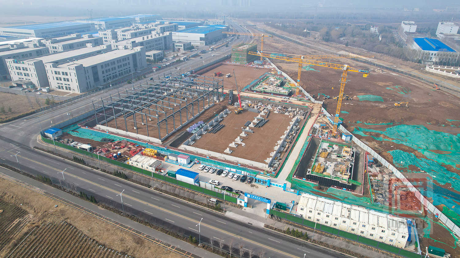 截至目前,6个单体建筑基础已全部完成,1#2#厂房正在进行钢结构安装,其余单体建筑前期筹备工作同步推进,即将进入主体施工阶段,已完成整个工程量的30%,预计年底主体、二次结构全面完工,2027年9月底交付使用。