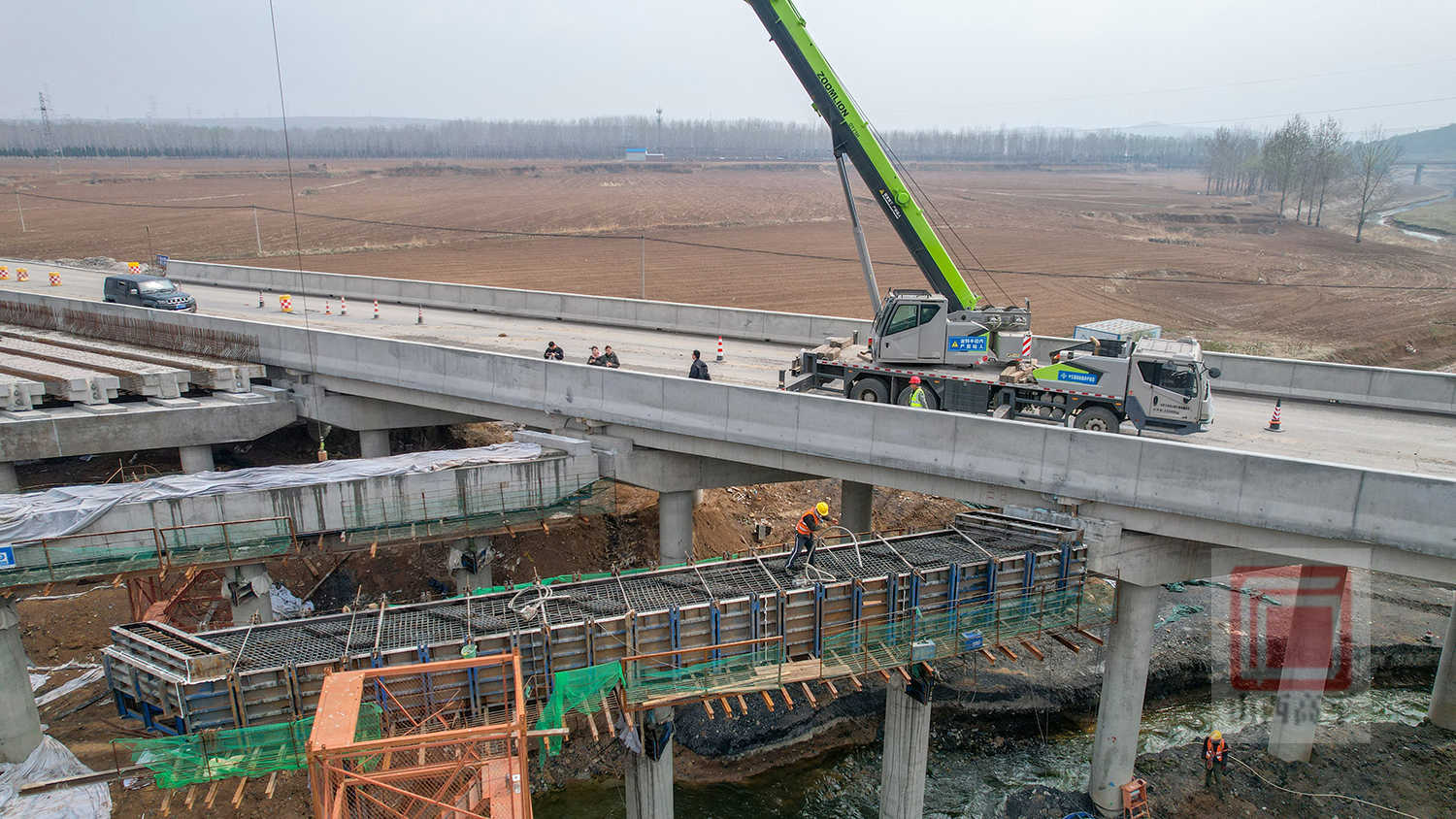 项目总工尤世雄介绍:“桥梁建设作为施工建设的重点工程,我们不断优化施工设计方案,科学调配技术力量,全力保障桥梁工程有序推进。目前,该标段已有一座大桥顺利完工,其余大桥建设正按计划稳步实施。丹河大桥预计6月底完工。”