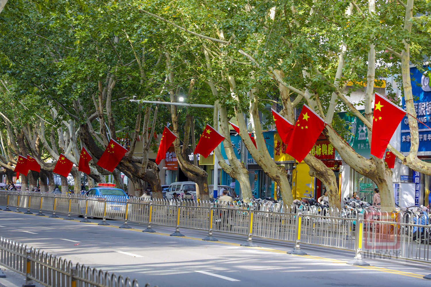 行走在街头,最动人的风景莫过于那抹跃动的“中国红”。放眼望去,道路两侧悬挂的五星红旗整齐划一、随风飘扬,在秋日阳光的映照下格外鲜艳,形成数百米的红色长廊。