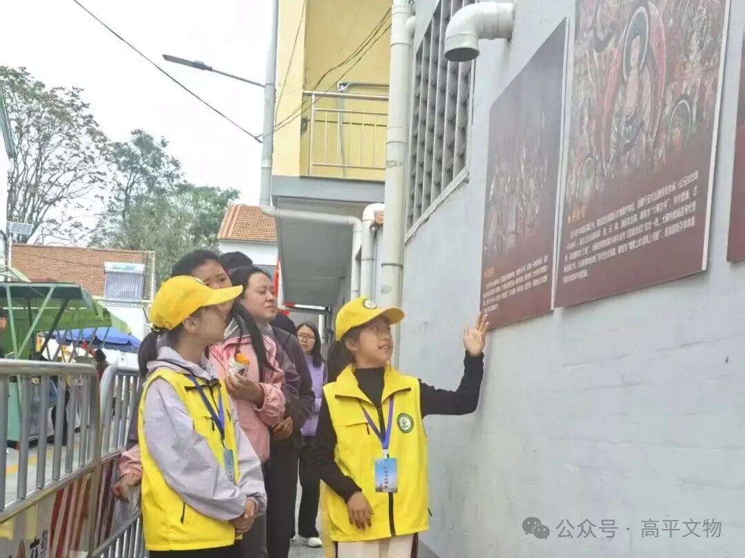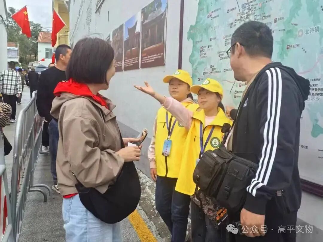 从停车场到寺门,小讲解员们一路主动服务,不仅介绍根雕、黄梨汁、红薯等特色产品及米山大食堂菜品,还生动讲解铁佛寺二十四诸天塑像,提醒游客可通过线上预约参观,并贴心地为外地游客推荐开化寺、姬氏民居等周边文保单位。学生们高效细致的服务赢得现场游客连连称赞。