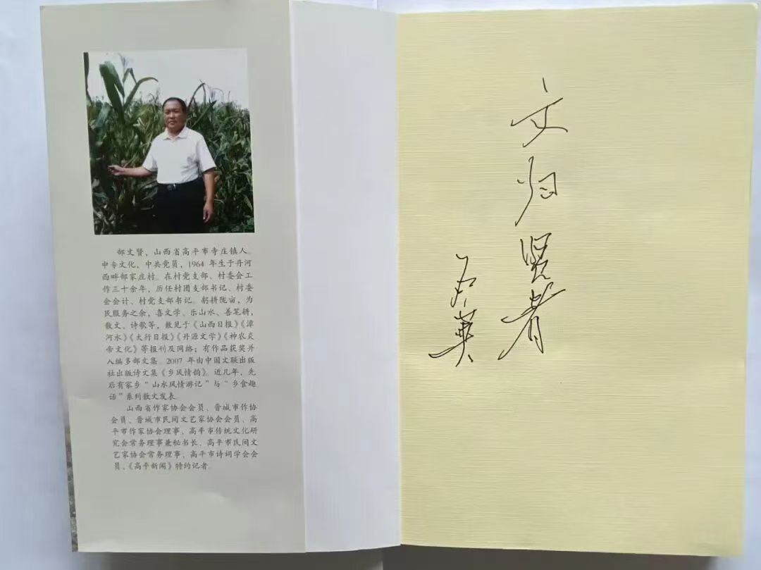 值得一提的是,《人民日报》社原文艺部副主任、高级编审,中国散文学会名誉会长,郦道元文学奖大赛组委会主任石英先生为郜文贤的荣誉证书题词“友贤,幸也”,并为郜文贤作品集《乡风情韵》《守望乡梓》《乡风絮语》分别题写了“乡风,熏风也”“文归贤者”“贤哉,文学爱好者”,体现了文学前辈的勉励与期许。