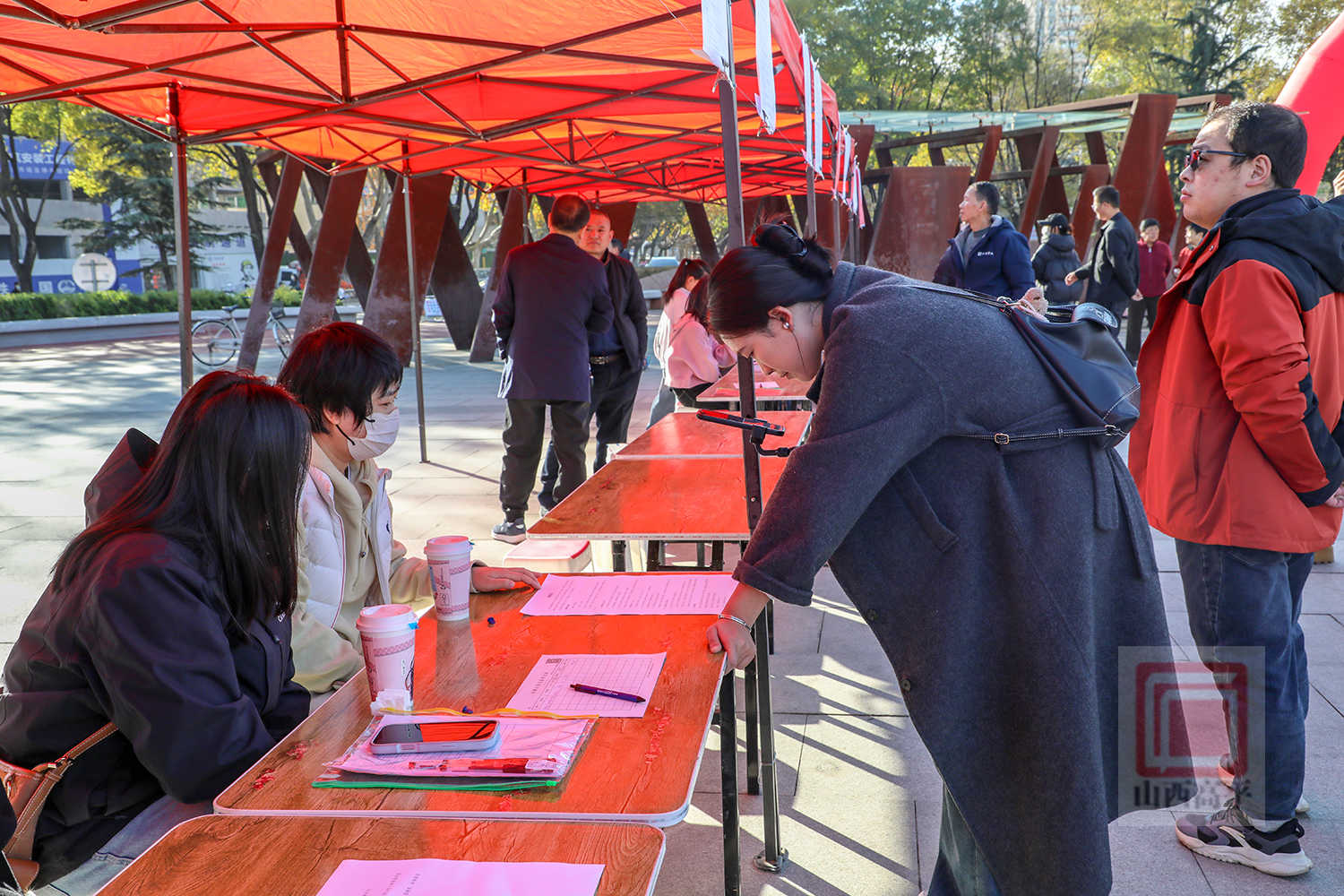 11月15日,我市在长平广场举办2025年金秋招聘会,采取“现场招聘+直播带岗”的方式,为求职者提供线上线下双渠道求职平台。