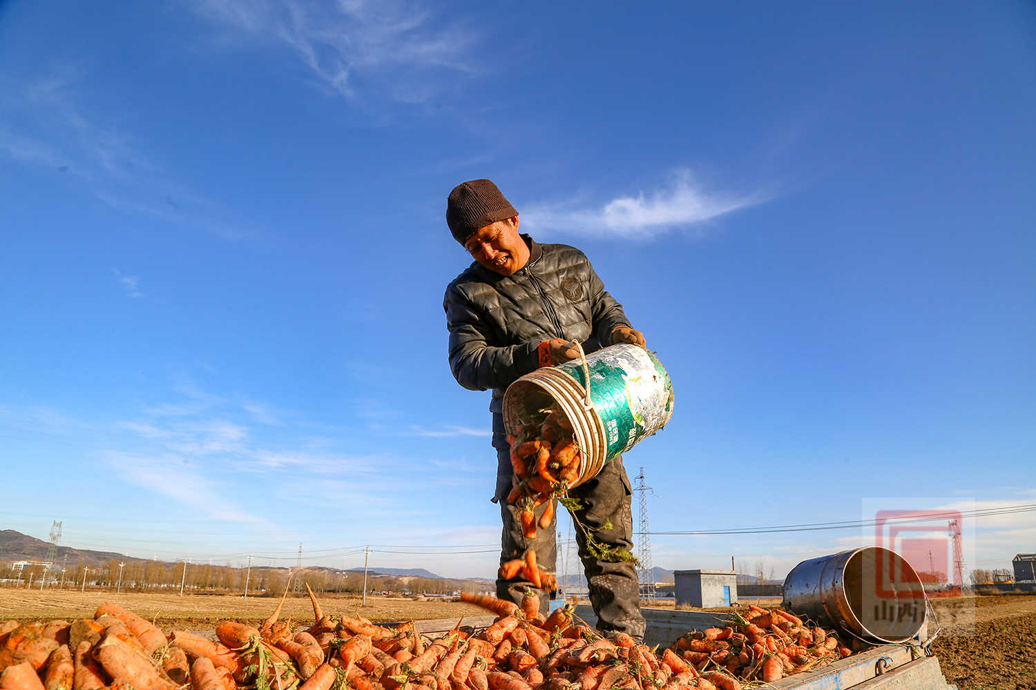 初冬时节,在寺庄镇伯方村北方清园农业专业合作社胡萝卜种植基地里,一派冬忙景象,红彤彤的胡萝卜铺满田间,村民们干劲十足,忙着去土、分拣、装车。新鲜采收的胡萝卜将陆续运往长治武乡收购商手中,增加收益。