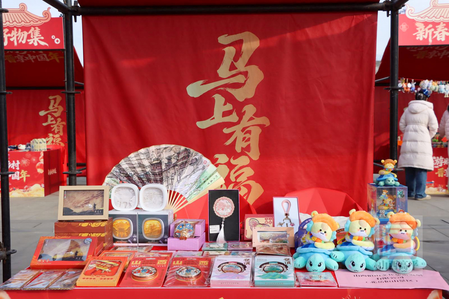 山西广播电视台文创集合店带来的古建元素冰箱贴、玩偶、收纳盒等文创产品,将传统美学与实用功能巧妙融合,成为游客争相选购的伴手礼。展区负责人王然赫介绍说,“我们此次带来的文创产品融合了山西古建文化和新春主题,就是希望通过年轻化、时尚化的表达方式,让传统文化可触摸、可体验、可携带,更好融入日常生活。”