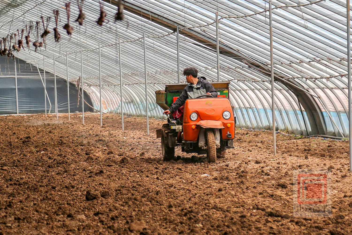 来到寺庄镇西阳村,工作人员分工协作,有序将大棚内的薄膜、残留秧苗进行集中清理,随后2台旋耕机驶入棚内,对土地进行翻耕作业。“我们组织了2台旋耕机和2台犁地机,对90亩贝贝南瓜种植大棚的土地进行旋耕作业,预计2月底可完成旋耕任务,接下来将种植贝贝南瓜。”大棚负责人丁浩介绍说。