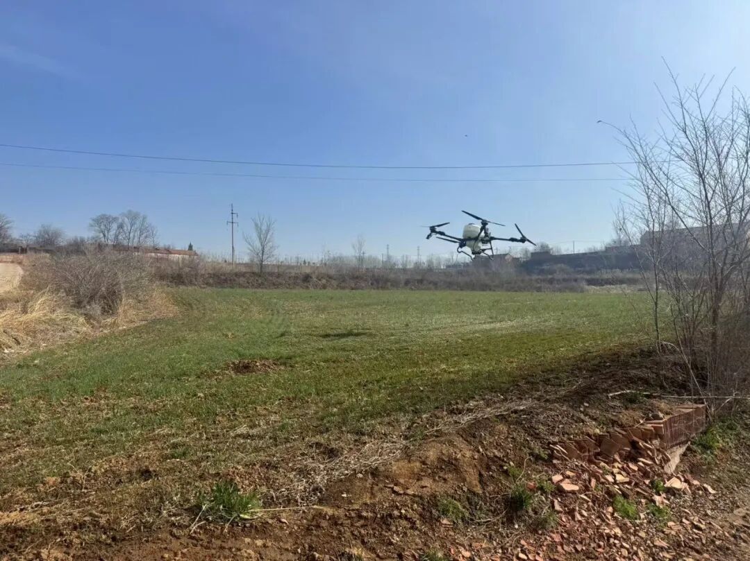 “今年我们采用无人机进行‘一喷三防’作业,不仅效率高、效果好,还能避免人工喷洒踩伤麦苗。”现场作业的技术人员介绍道,“针对部分麦田苗情偏弱的实际,我们在农技人员的指导下,对药剂和叶面肥的配比进行了科学调整,确保防病治虫和促弱转壮精准有效。”