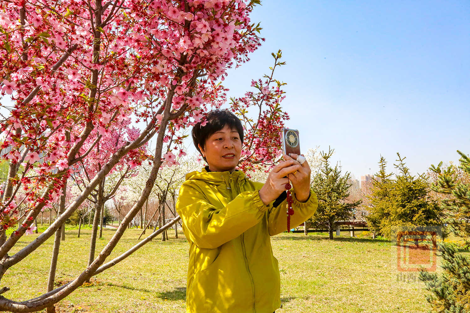“公园的樱花开了,今天和姐妹过来逛逛,拍拍花、散散心,看到这么美的景色,心情十分愉悦。”市民马进花笑着说道。