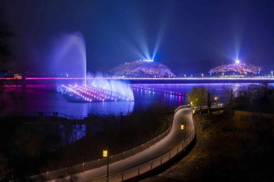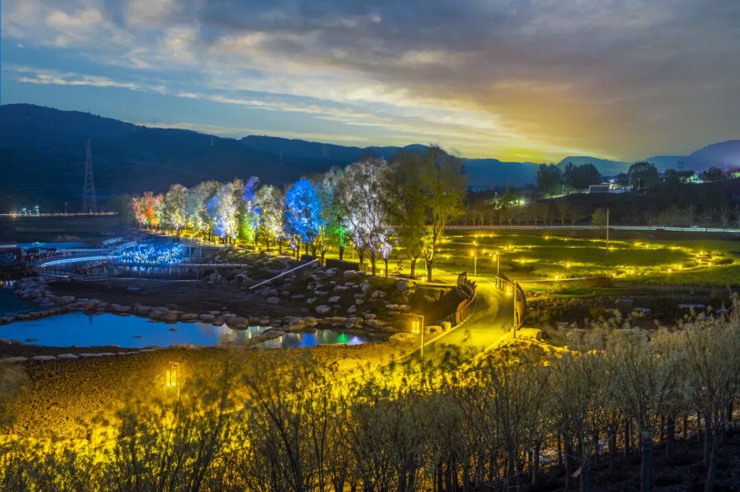 夜幕降临、彩灯闪烁,整个村庄宛如“灯的海洋”,更添几分梦幻。游客可泛舟湖上,漫步古街、入住精品民宿,体验“丹水之源 慢享釜山”的悠然自得。