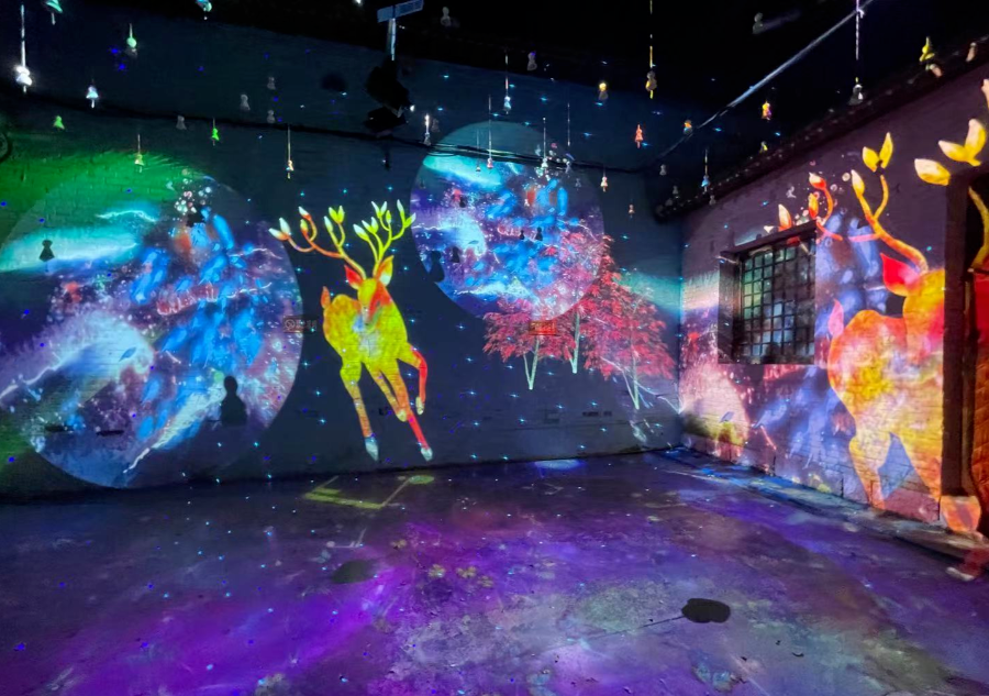 一进园区,网红天幕如银河倾泻,抬头就是漫天“星光”,脚踩在地面的彩绘上,仿佛踏入星际空间,下一秒就要穿越到宇宙尽头。