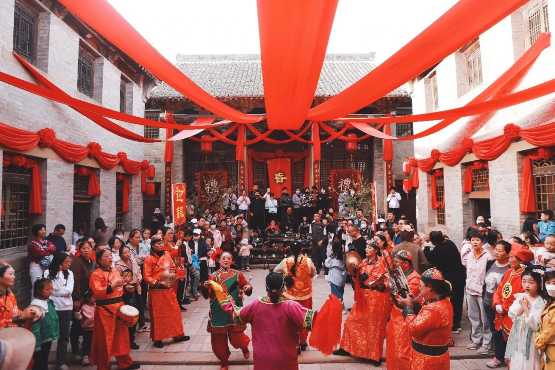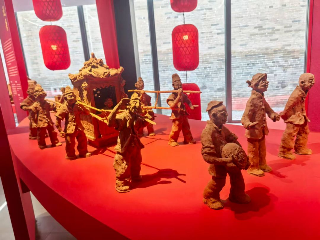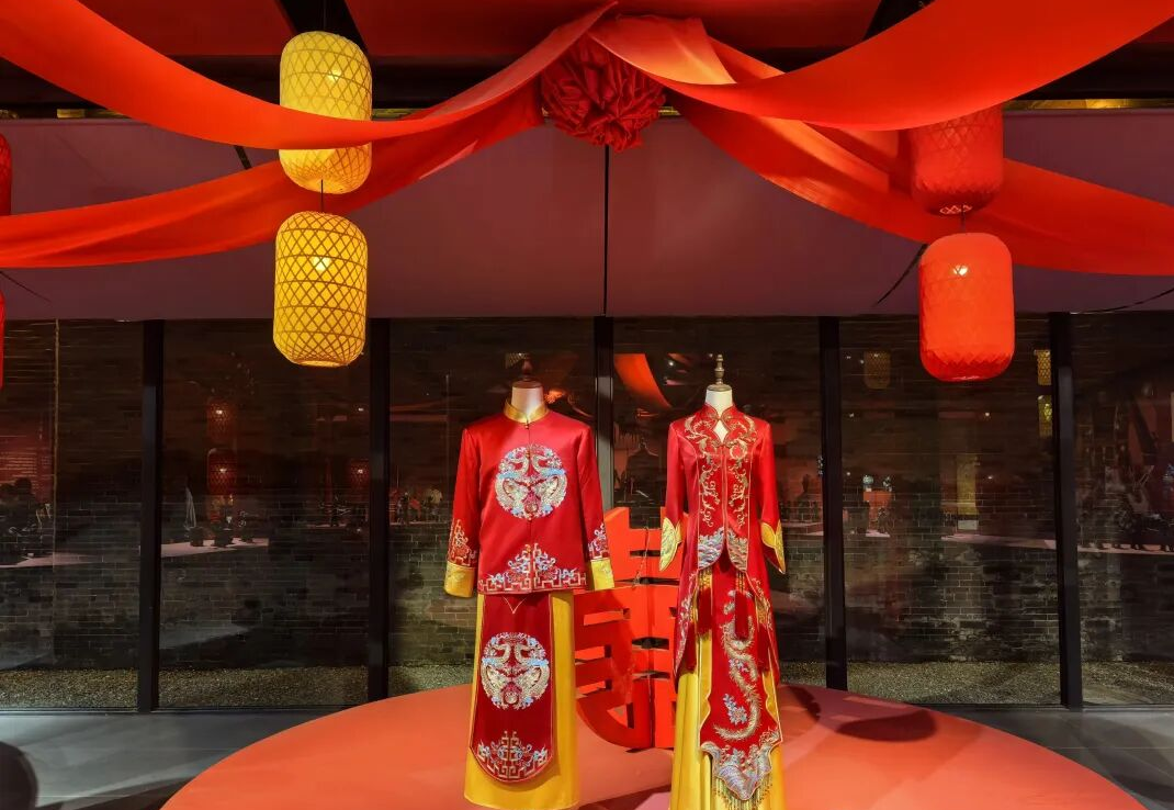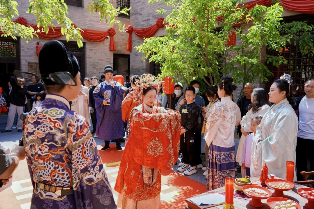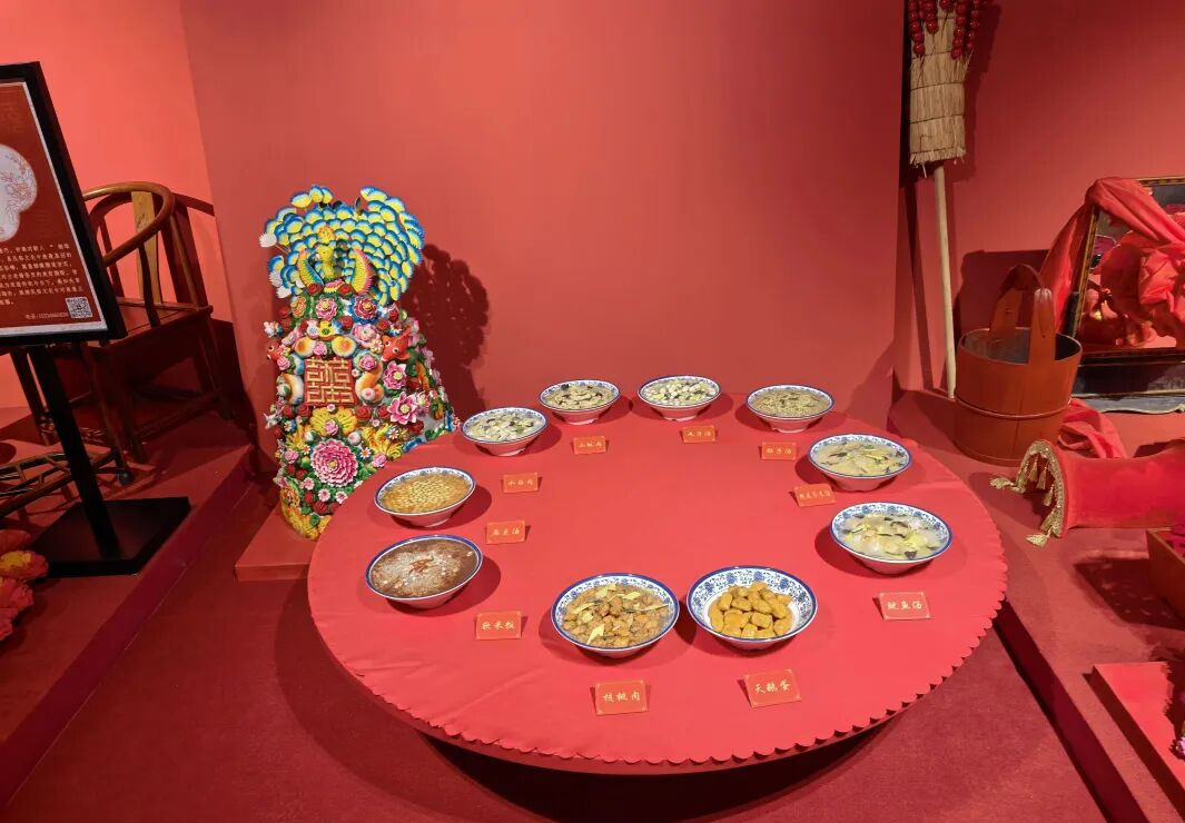 走进喜镇苏庄,仿佛瞬间踏入一场鲜活的高平旧时婚嫁场景,每一处细节都浸着烟火气与仪式感,传统婚俗体验馆内的婚嫁全流程泥塑最是动人,再现高平婚俗“开锁”“娶亲”场景,让泥土里似是藏进了鲜活的灵魂。“高平十大碗”还原婚宴盛况,婚俗道具中龙凤褂,红盖头浸着美好祈愿。