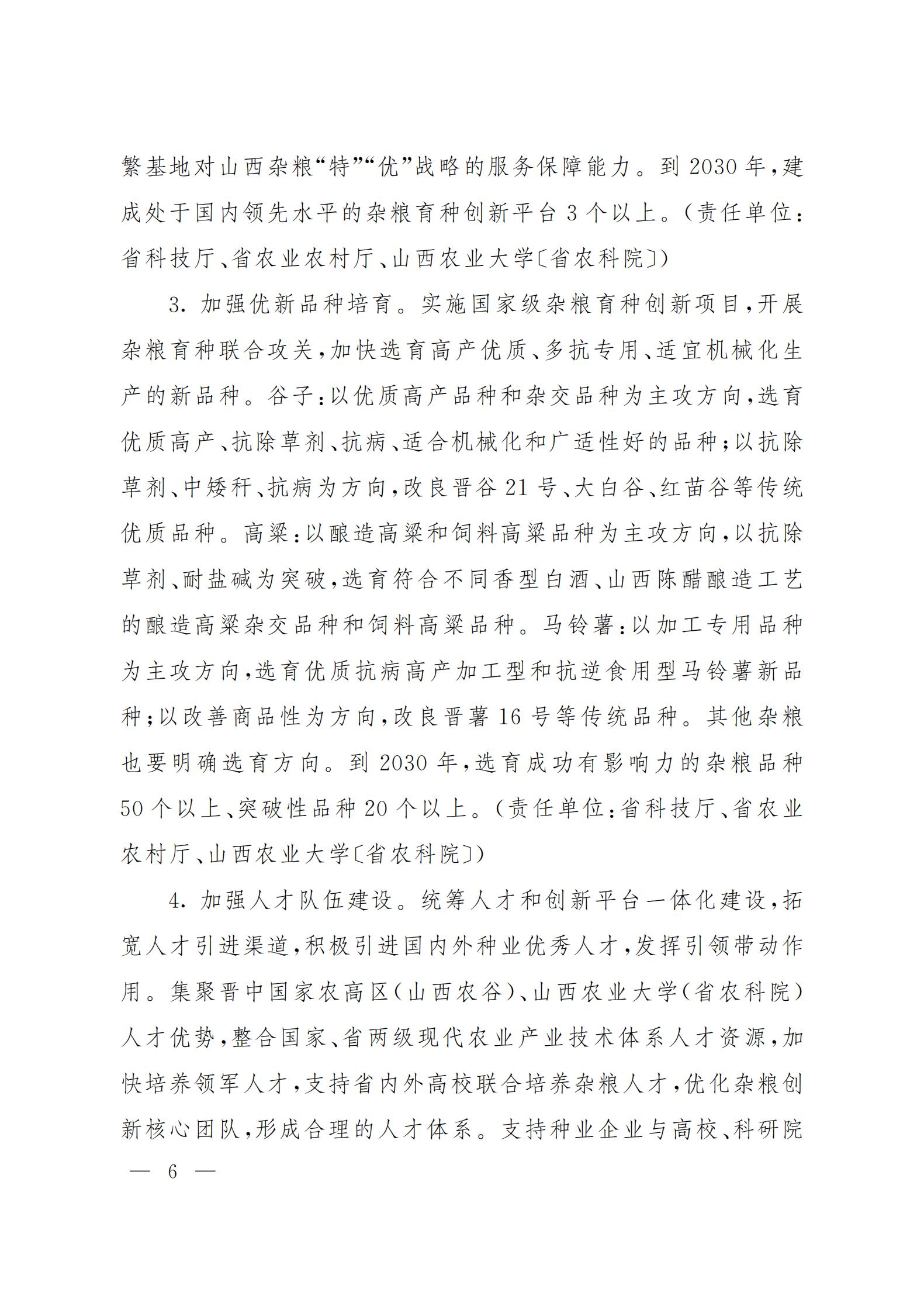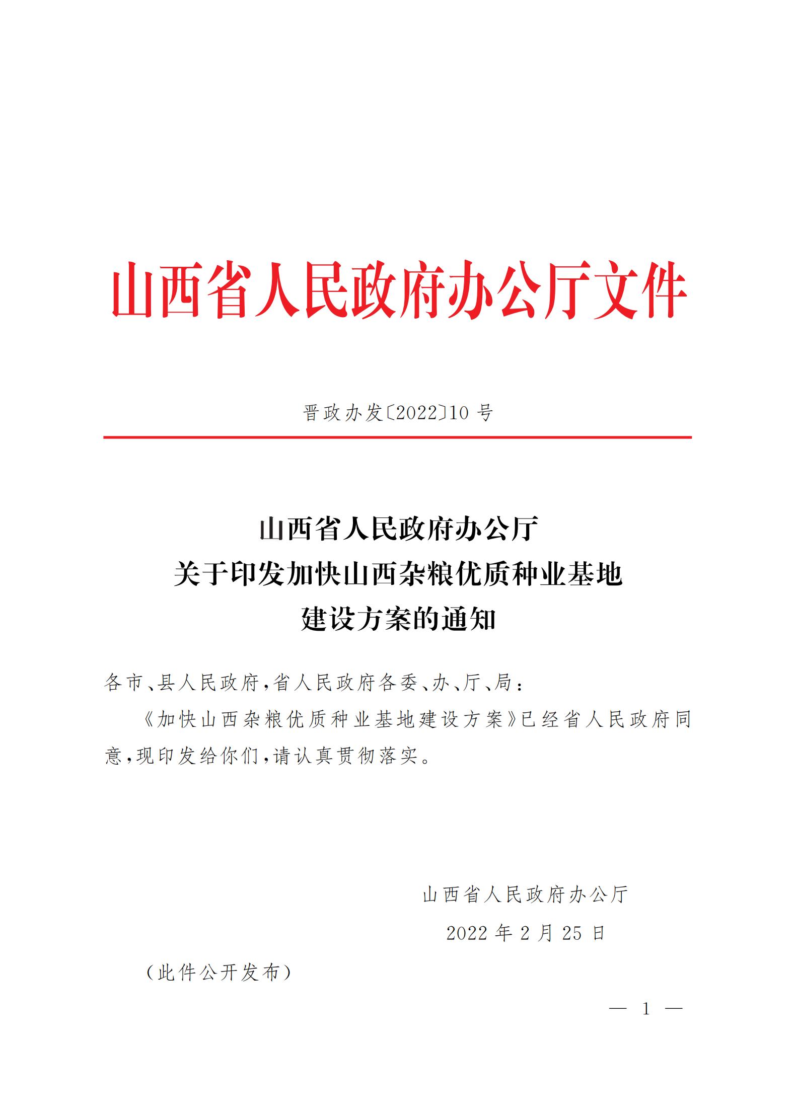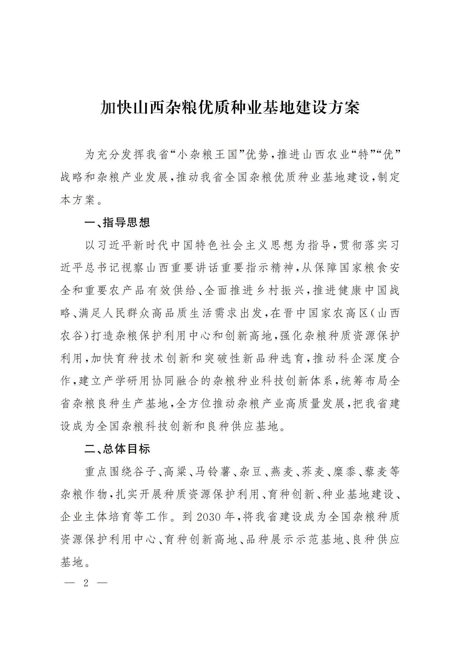山西省人民政府办公厅关于印发加快山西杂粮优质种业基地建设方案的通知 来源:山西省人民政府网 发布时间:2022-03-01 【字体:小 大】 如果内容不能正常显示,请更换浏览器进行重试 本页二维码 【打印正文】