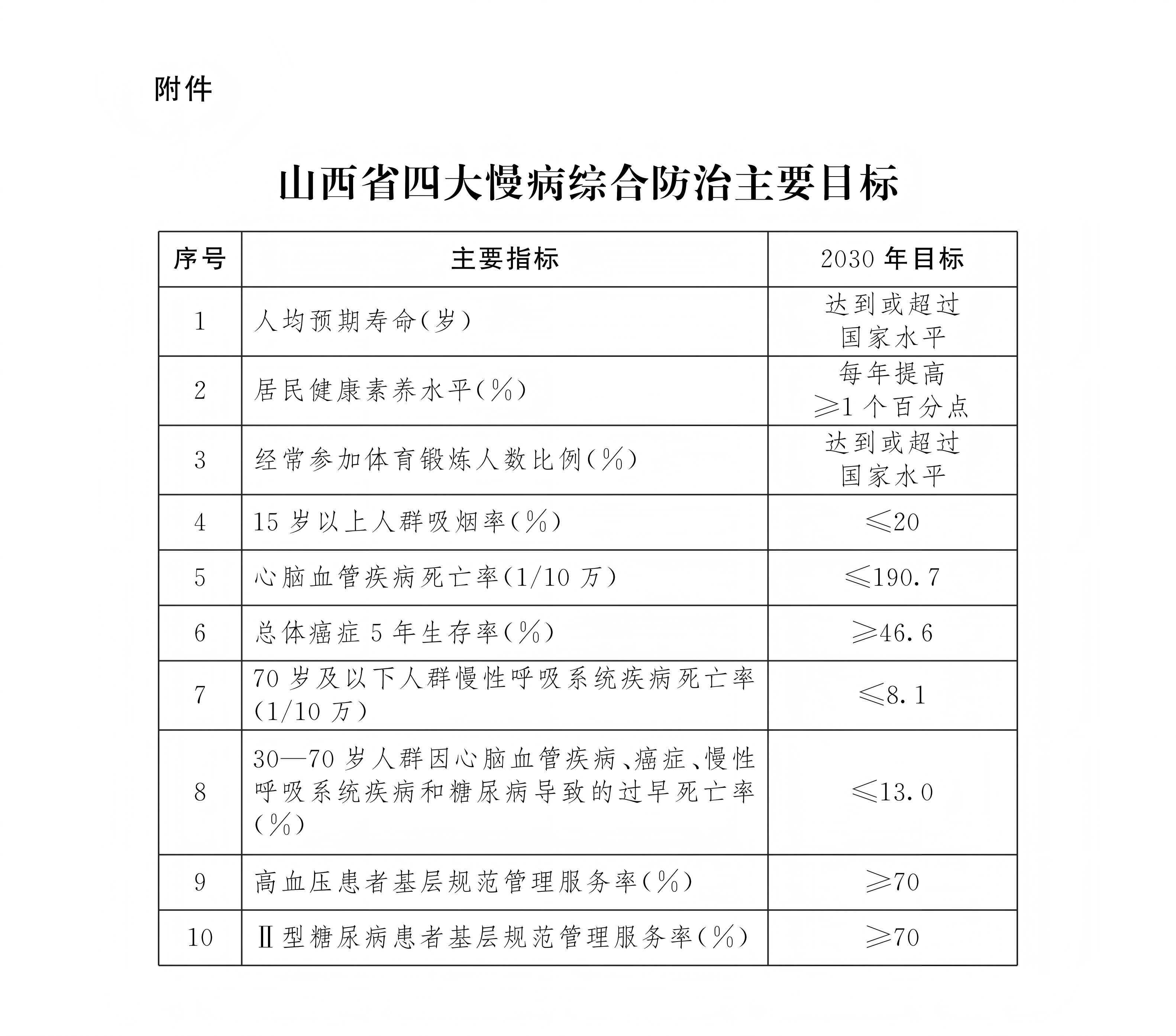 附件:山西省四大慢病综合防治主要目标