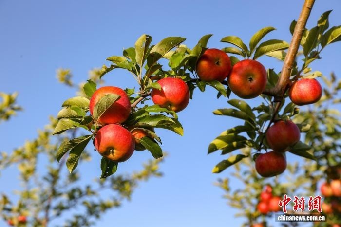 山西晋城高平市野川镇杜寨村的果园迎来丰收,红彤彤的苹果缀满枝头,果香四溢。 郭少宇 摄