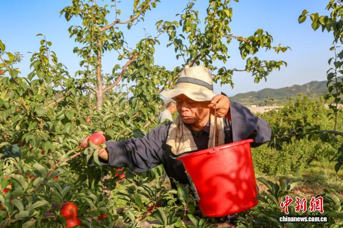 秋日时节,山西晋城高平市野川镇杜寨村的果园迎来丰收。红彤彤的苹果缀满枝头,果香四溢,村民们穿梭在果园,忙着采收成熟的苹果,田间地头呈现出一派丰收喜景。