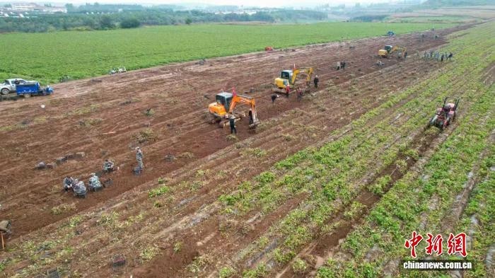 “红薯不耐涝,再不收就全坏了,多亏企业伸出援助之手,这些志愿者每天都来帮忙抢收红薯,还有多台挖掘机轮番作业,不仅提高了收获效率,还最大程度减少红薯破损。”东周村党支部书记、村委会主任连燕霞介绍,当地正全力抢收,预计月底可完成收获任务。