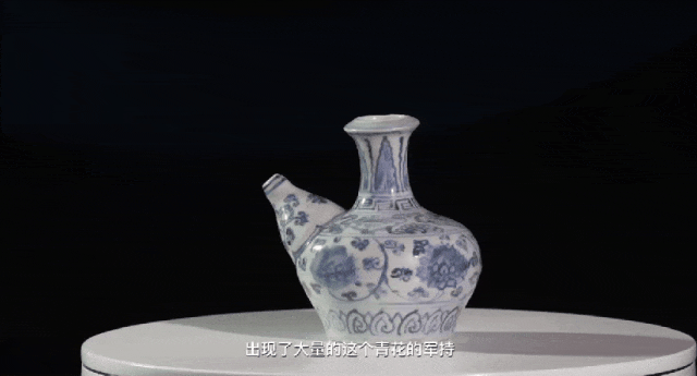 青花缠枝莲纹军持——原本是金属质地的南亚宗教器材,隋唐传入中国后被改造成瓷器,又出口到了东南亚和南亚地区。