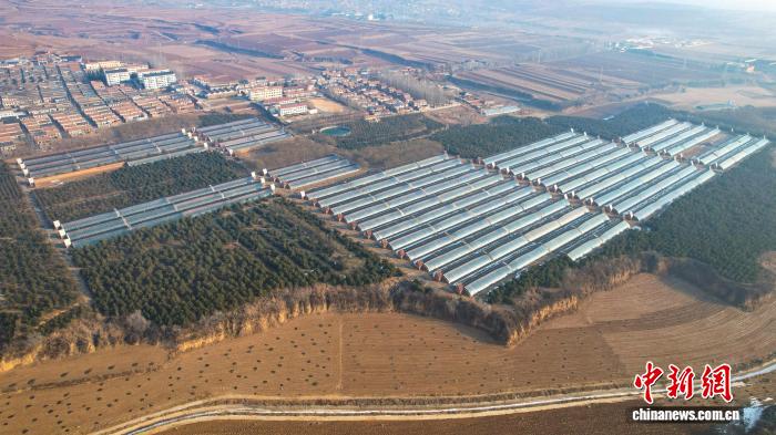 东周村积极盘活闲置资源,建成80栋四季恒温大棚。(无人机照片)张凯 摄
