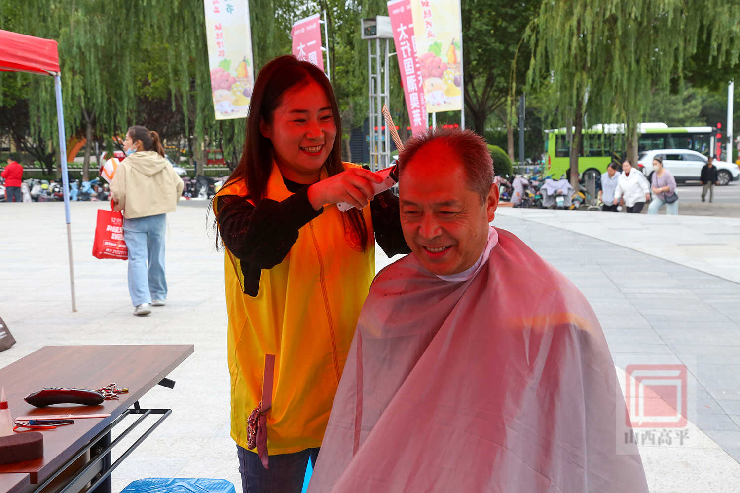 与此同时,文明集市现场也人气爆棚。20余个摊位一字铺开,涵盖政策宣传、便民服务、文创非遗、农产品展销等多个领域。志愿者们发挥所长,为市民提供健康义诊、爱心义剪、免费贴膜、急救技能培训等多样化的贴心服务,并向大家普及反诈、法律法规、交通安全、网络安全等常识,进一步增强群众的安全意识,现场洋溢着浓浓的文明味与安全感。广大群众或驻足学习安全常识,或仔细挑选特色文创和高平好物,在沉浸式赶集体验中感受文明新风。