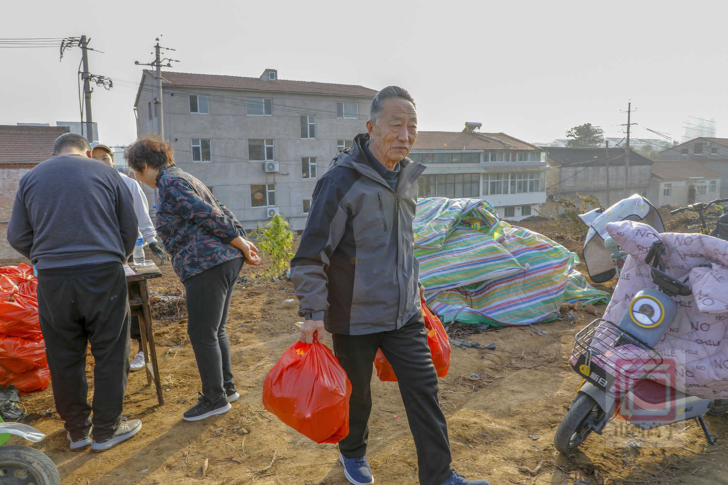 与此同时,在另一边的红薯分发点,闻讯而来的居民在工作人员的有序引导下,依次登记、领取红薯,忙碌的秋收场景与居民的幸福笑脸勾勒出秋日最美的画卷。