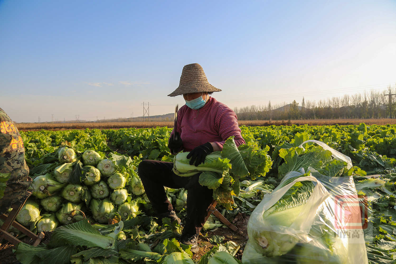 时值初冬,寺庄镇伯方村北方清园农业专业合作社种植的白菜迎来丰收。村民们趁着晴好天气,忙着采收,运往市区商超。