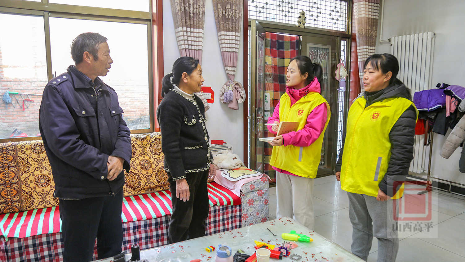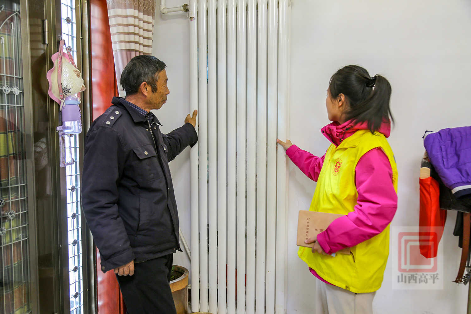 “叔叔,最近身体怎么样?家里暖气暖和不暖和?用电用火要注意安全,出门一定要记得关煤气阀。”在围城村村民程永明家中,工作人员逐一登记居民信息,询问老人生活情况,并耐心普及冬季用火用电的安全常识。