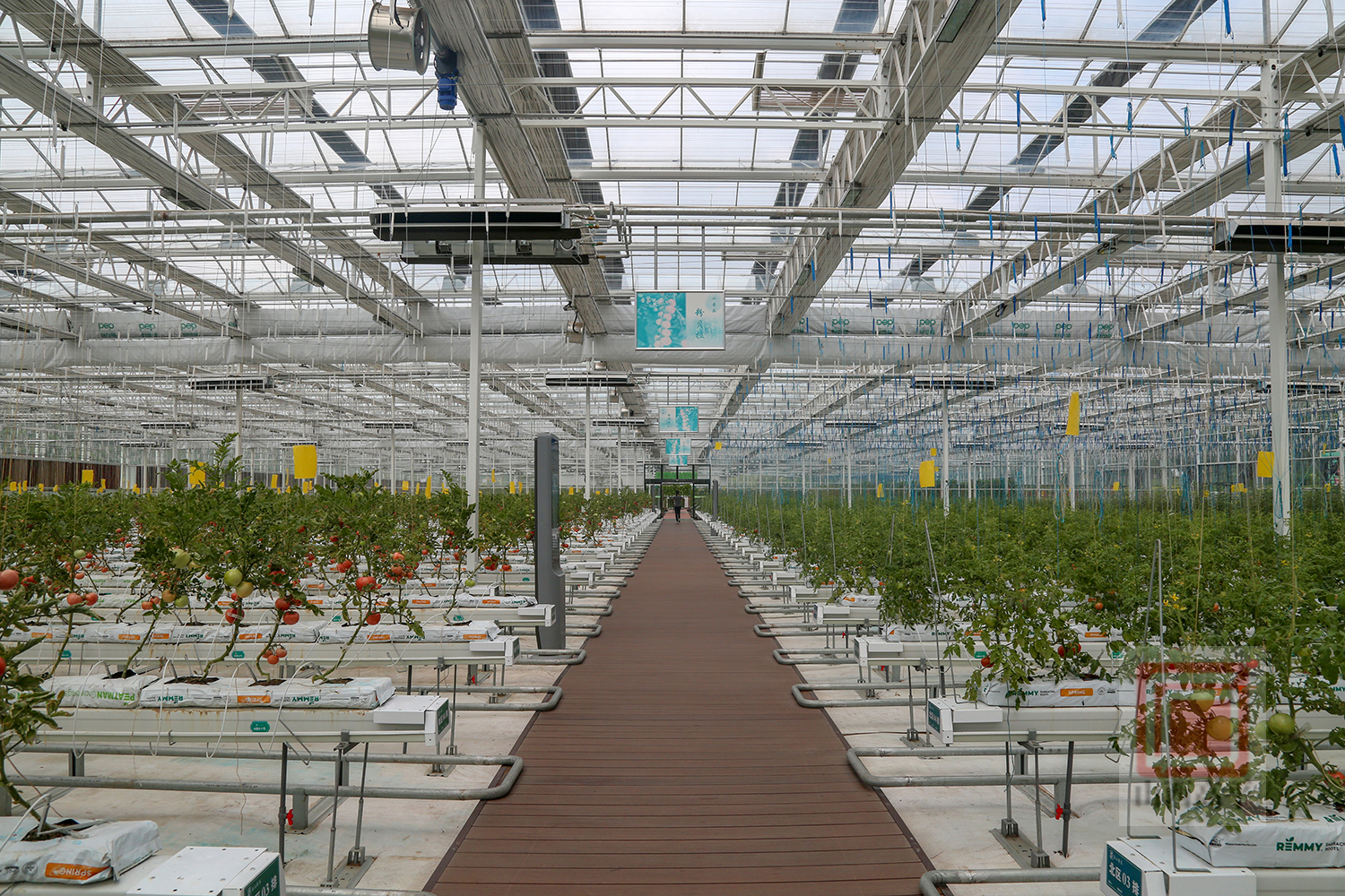 釜山现代化农业智慧科技园区建设的荷兰式玻璃温室,分为东西两区,东区以种植番茄、圣女果、贝贝南瓜为主,西区以种植绿色蔬菜为主。园区采用水培、基质栽培等新型种植模式和5G物联网技术,可对农作物生长进行全方位监测和精准控制。目前,园区共种植果蔬达20多种,实现了果蔬全年生产、四季供应,形成了集育苗、种植、采摘、销售、研学于一体的现代农业示范区。