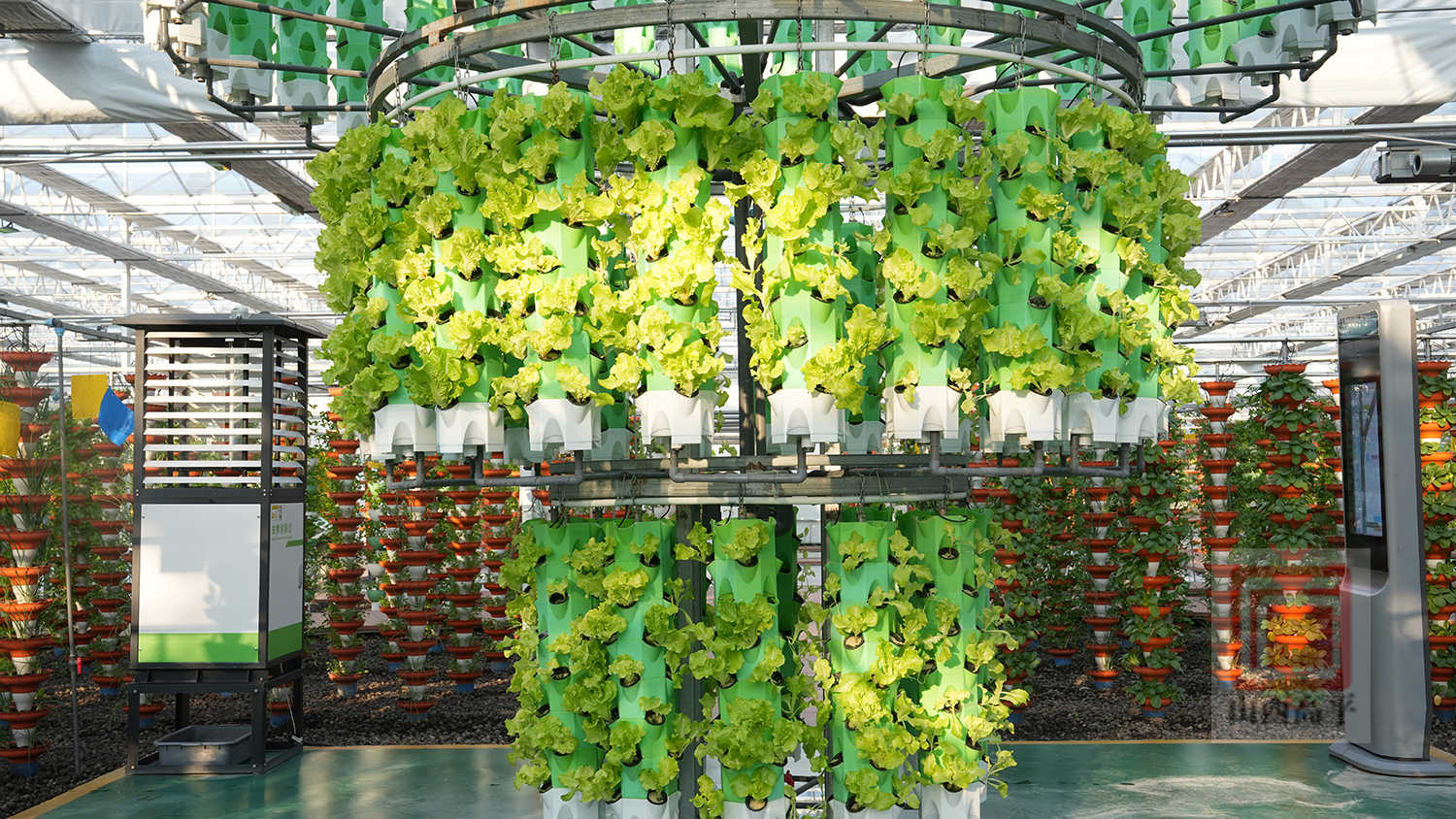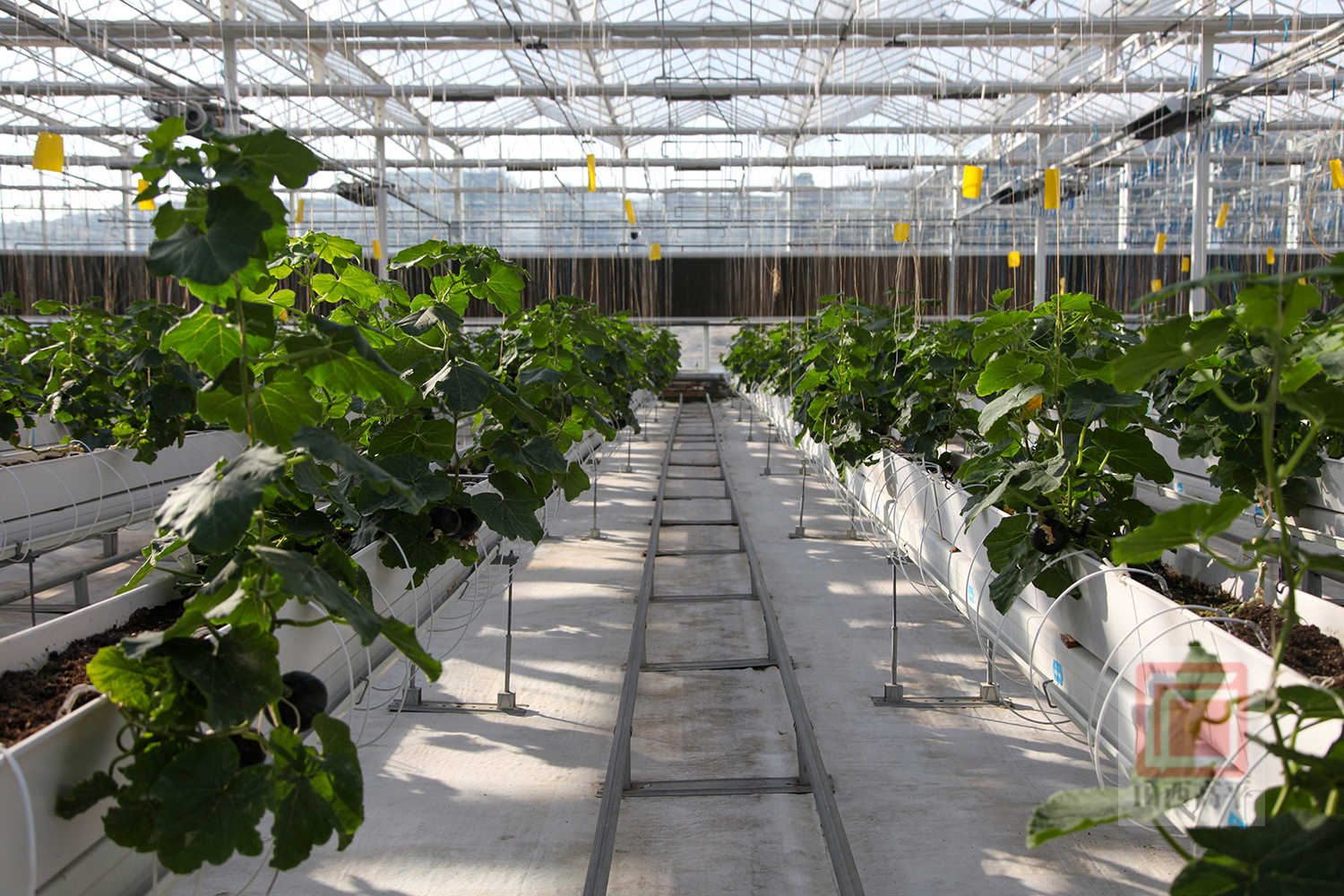 釜山村现代农业智慧科技园区别于传统温室大棚种植,采用水培、基质栽培等新型种植模式和5G物联网技术,可以根据植株变化自动调整滴灌、施肥、光照、温控等生长要素,使种植的果蔬在不同阶段都处于最佳的生长环境中,实现了一年多季稳产增产。