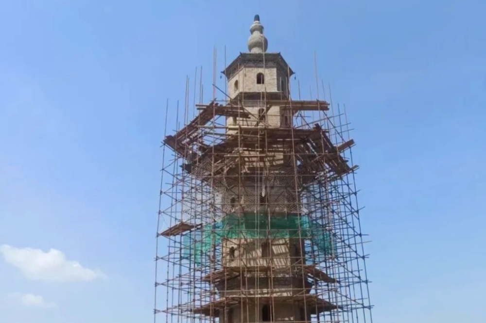 此前,随着时光流逝,风沙、日晒侵蚀,古塔出现砖石风化剥落、结构松动等问题。2025年,马村镇及时启动修缮工程,秉持“修旧如旧”原则,融合传统工艺与现代技术,更换塔身砖石、加固结构、修补墙体及棚板楼梯、增设风铃等,在筑牢安全防线的基础上,最大程度保留古塔原始风貌与历史信息。