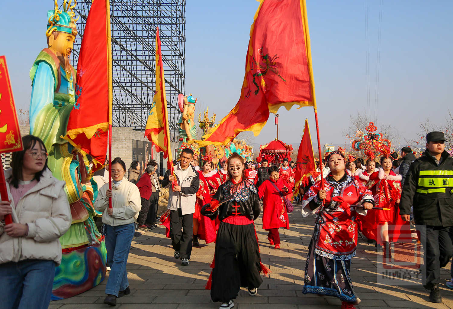 非遗社火在抬花轿、上党八音会、威风锣鼓等欢快的鼓点中拉开帷幕。游客们驻足观赏、体验,感受高平非遗魅力。在威亚演艺中,仙女散花、凤舞九天、飞马迎春等高空表演惊艳登场,营造出如梦似幻的仙侠氛围,为游客送上了新春的美好祝福。