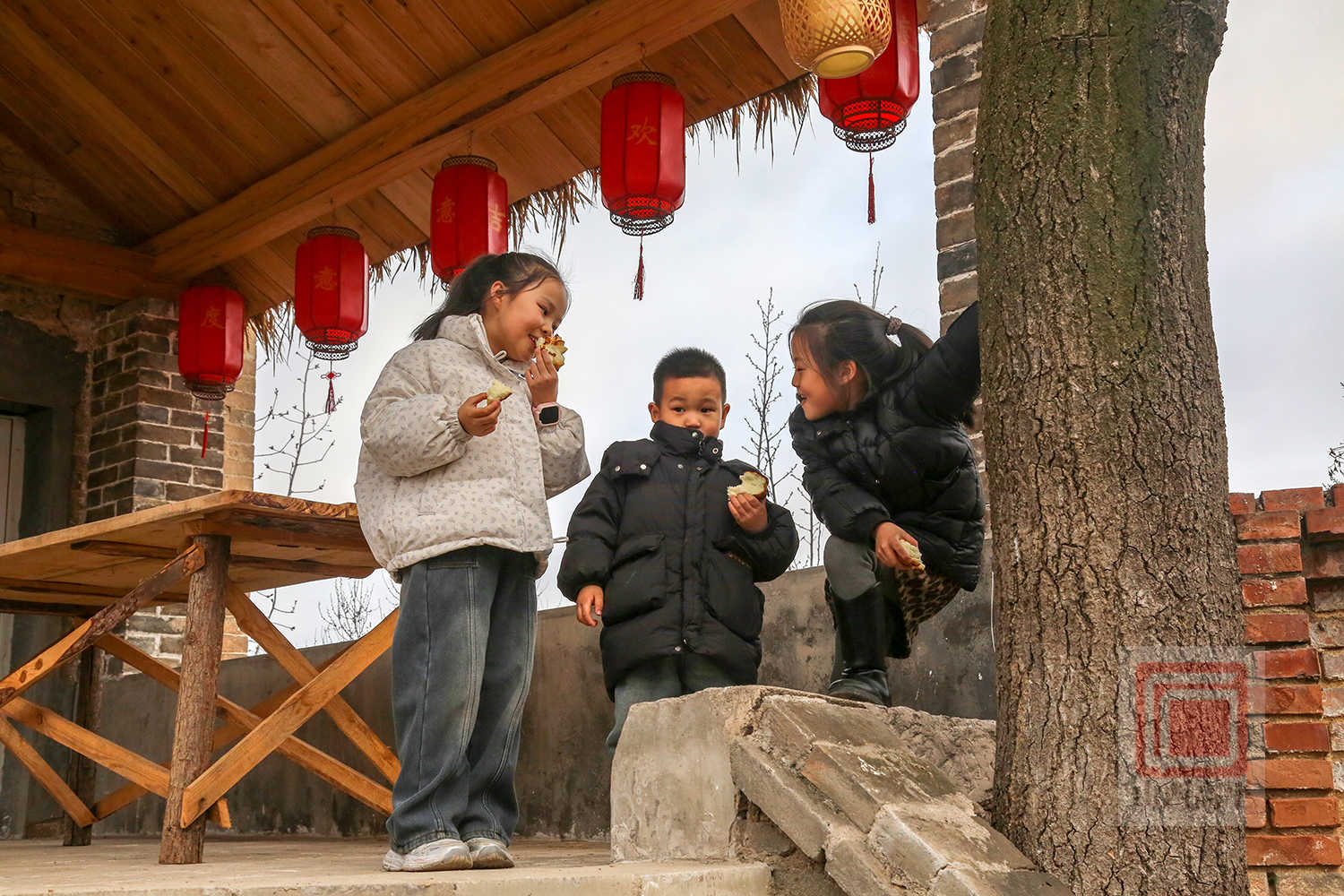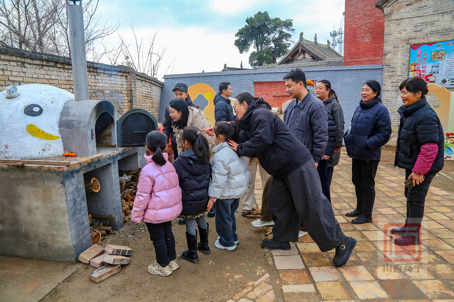 随后,游客们还来到国保单位嘉祥寺,赏古建、拓福马,祈福纳祥。在尝吉祥馍环节,村民与游客围着火炉烤花馍、尝花馍,感受传统年味。