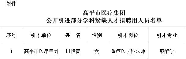 高平市医疗集团公开引进部分学科紧缺人才拟聘用人员公示