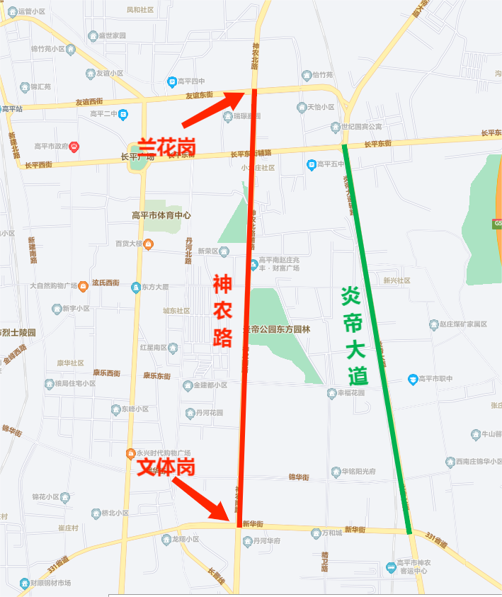 途经神农路可绕行炎帝大道。