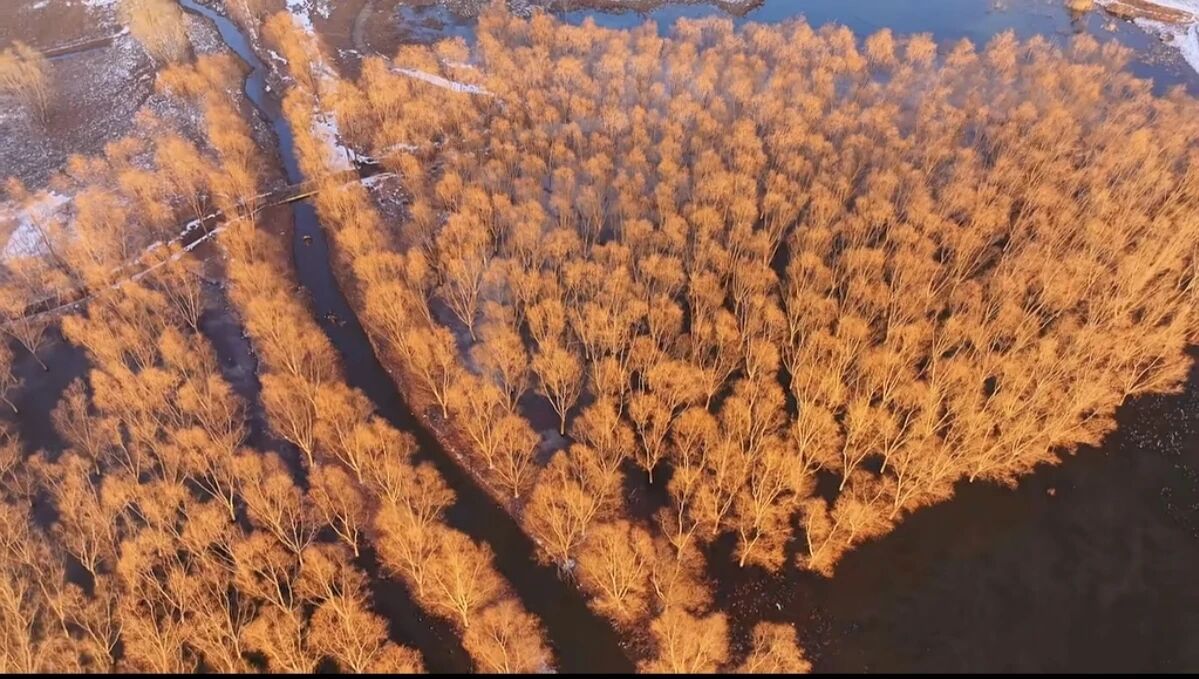 春夏季,这里是候鸟北归的“服务区”。放眼望去,杨、柳、松等树木郁郁葱葱,枝叶交织成一片生机盎然的林海,林下绿草如茵,宛如铺开的绒毯。澄澈的湖面倒映着蔚蓝的天空与岸边的浓绿,一座座沙洲如碧玉簪般伸入湖心,白天鹅、白鹭、苍鹭等鸟儿在沙洲旁悠然停歇、嬉戏,与岸绿洲影共同绘就“鸟戏春水”的灵动画卷。值得一提的是,这里还迎来了尊贵的“客人”——国家二级保护动物小天鹅,成为湿地生态改善的生动注脚。