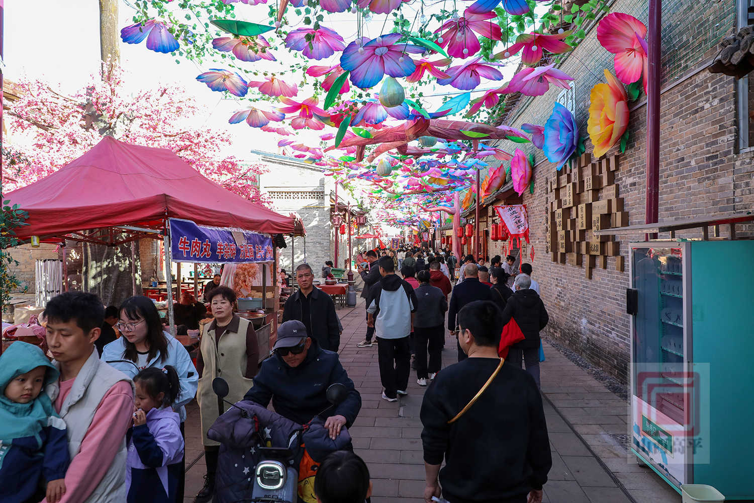 来到釜山村,浓浓年味扑面而来。演职人员载歌载舞,开福门、迎宾客。在广场上,锣鼓铿锵,舞狮队员身着艳丽狮服,腾跃翻滚、摇头摆尾,动作矫健灵动、威风凛凛,引得游客纷纷驻足观看。古街上,福、禄、寿、喜、财“五福”向游客撒福包,送上新春的美好祝福。八音会、舞蹈快闪等节目旋律欢快,传递出喜庆的节日氛围。游客们漫步古街古巷,在沉浸式的互动民俗活动中,探福源、拓福印、汇福愿、传福脉,开启寻福之旅。