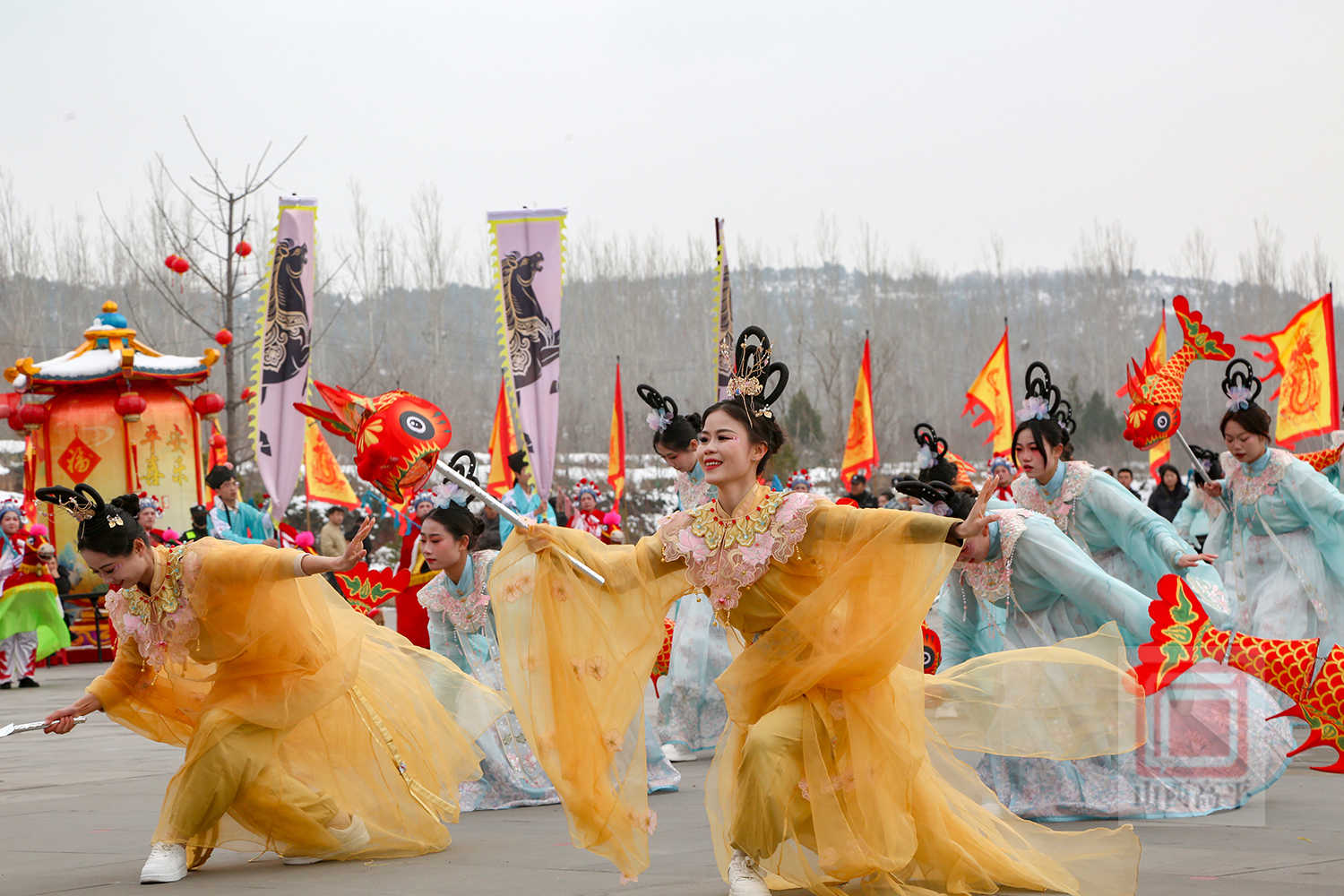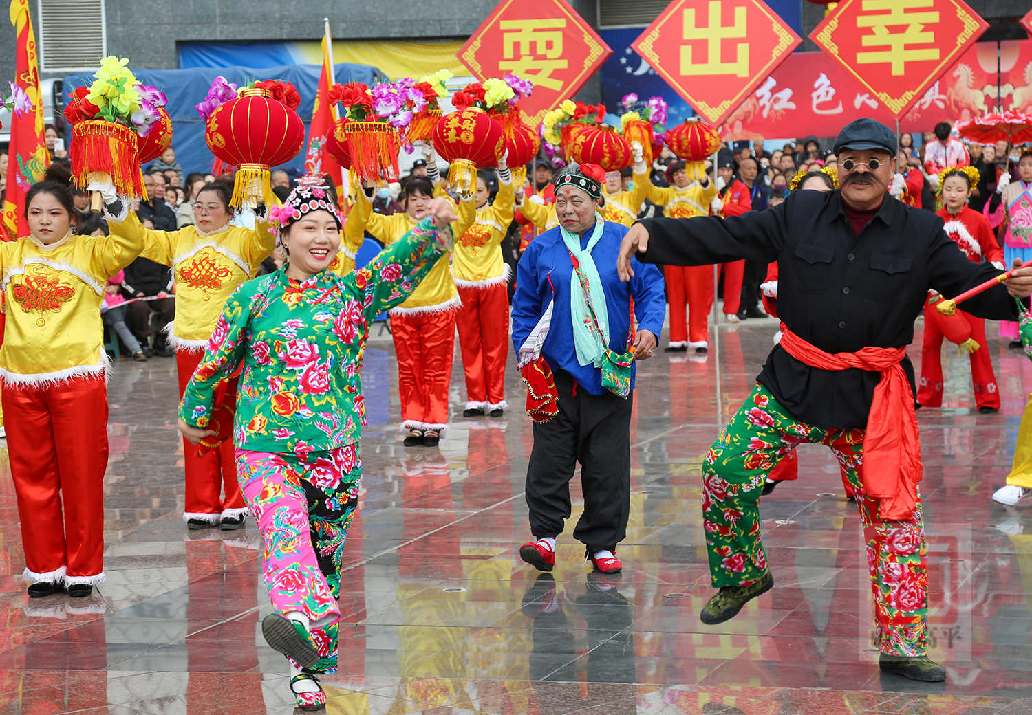 在炎帝陵景区,锣鼓声、欢笑声、喝彩声此起彼伏。表演队伍踏着铿锵有力的鼓点,不时手持彩扇、花伞转动,不时扭秧歌、抬花轿变换队形,不时划旱船、跑竹马、踩高跷走花样……表演者个个精神抖擞,踩在点上,扭在腰上,载歌载舞将一项项非遗民俗演绎得出神入化。广大群众在祈福纳祥中,共赏非遗风采,共庆元宵佳节。