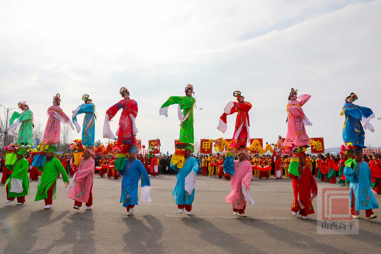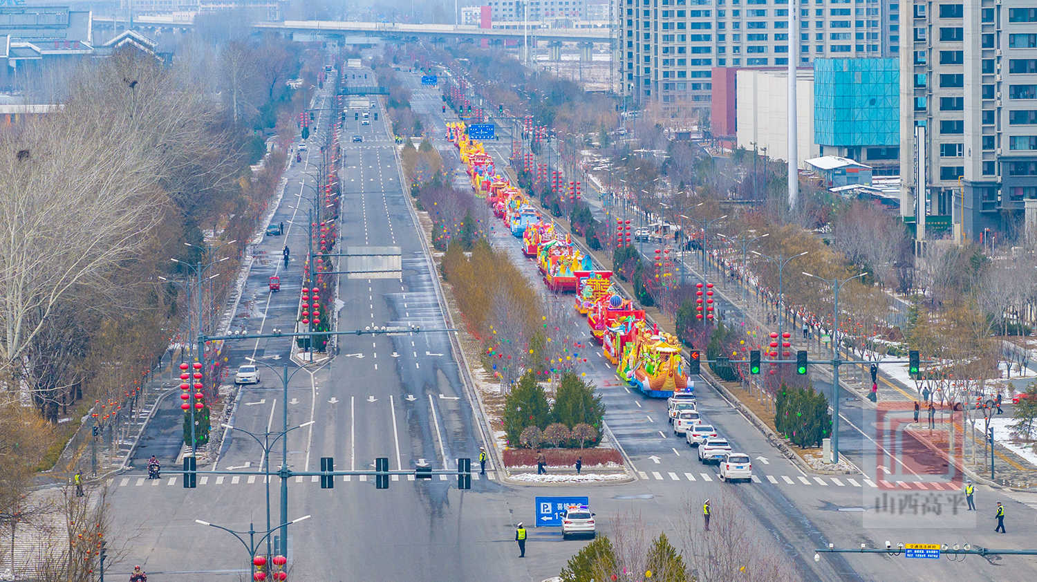 20辆彩车以中国红与金黄为主色调,巧妙融合了生肖骏马、炎帝文化、古建文旅、产业振兴、城乡发展等元素,造型精美、设计独特,全方位展现了高平厚重的文化底蕴、蓬勃的产业活力与日新月异的城市变化。
