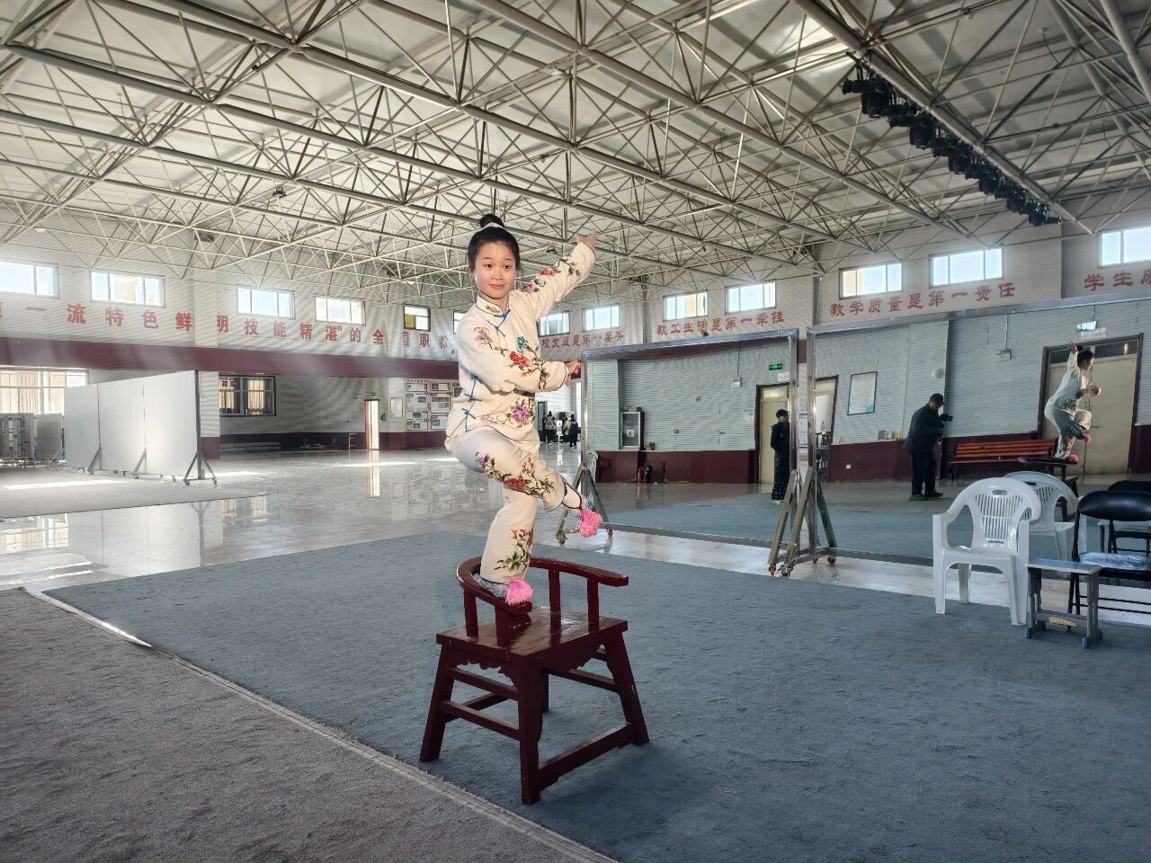 孩子们的训练,是实打实的生存训练。“跑圆场”要练到上身纹丝不动,头上的翎子不晃;“踢腿”要每一下都带风;翻“小翻”时,软垫上能听见“噗噗”的落地声。