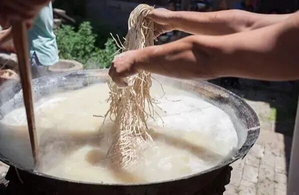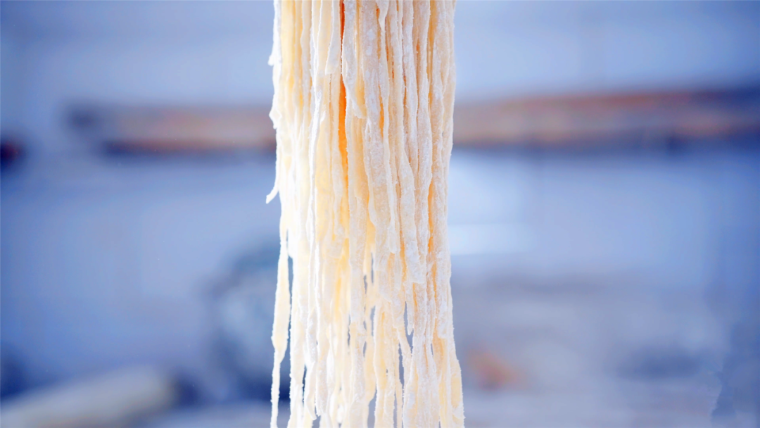 与泽州大阳的“馔面”相比,大周纂面在“韧”与“爽”之间找到了独特的平衡。大阳馔面或许更显宫廷“馔玉”之风,造型更为讲究;河西碱面则以其明确的碱香和独特的黄亮色泽,透露出应对水土、改良口感的智慧。做面食“盐是骨、碱是筋”,这句话堪称一千多年面条制作史的经验之谈。如果说卤水成就了豆腐,盐和碱作为两种最普通最常见的“改良剂”,也成就了面条的百绕千回。“筋、骨”二字明白无疑地指明了它们的功能作用:盐主要用来增加面条的强度与硬度,碱主要用于改善面条的延展性和韧性。从实践中看,加碱可以显著提高拉面条的质量和效率,而对延展性并无特别需求的非拉面类面食,如刀削面、手擀面等,使用普通面粉,加上合适的揉面饧面过程,不加碱面也能做出口感合适的面条。纂面三兄弟都是擀面类,理论上加碱并不是必需,那为何这样的做法会流传至今呢?有人认为是碱面有特殊的香味,但真正的奥妙则隐藏在经济背景当中。
