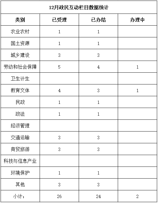 12月份政民互动栏目数据统计